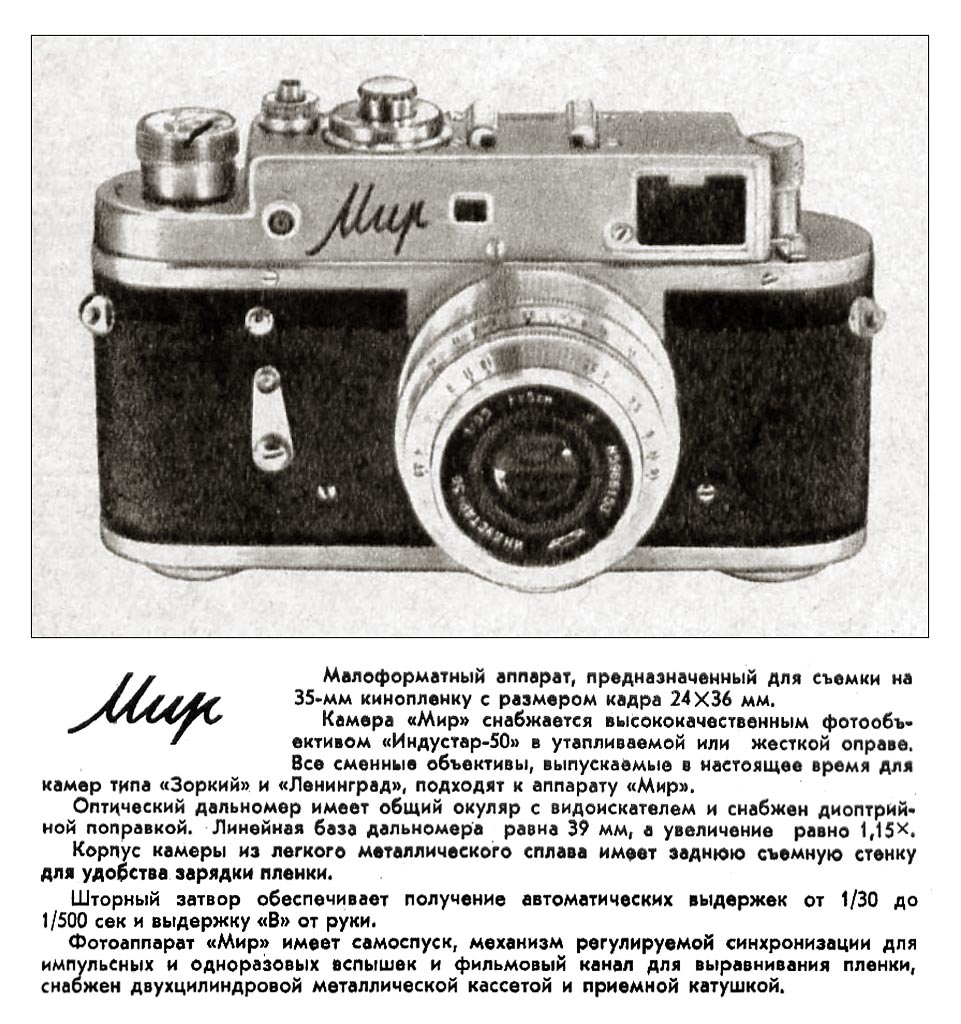 и относительным отверстием 1:3,5 и 1:2,8. Видоискатель и дальномер, механически