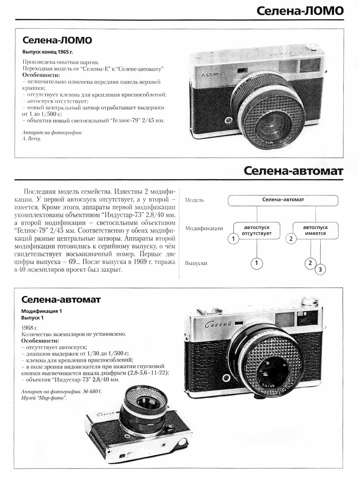 фотоаппараты "Селена-Е" (1968 год), "Селена ЛОМО" (1965 год) и "Селена-автомат"