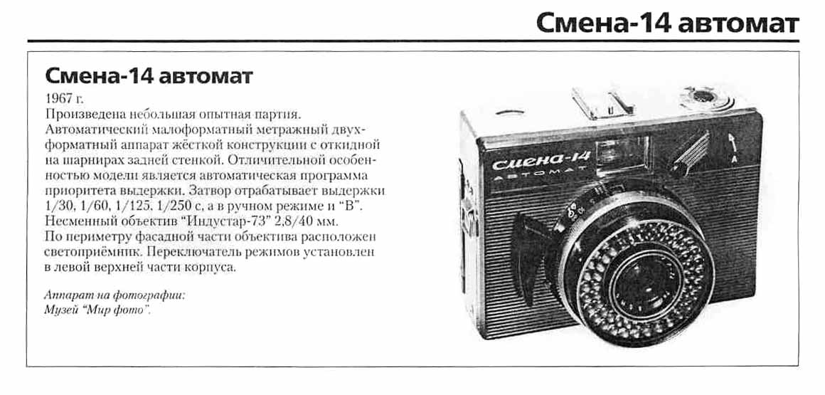 из каталога-классификатора "1200 фотоаппаратов из СССР" В.Суглоба, С.Кочергина,