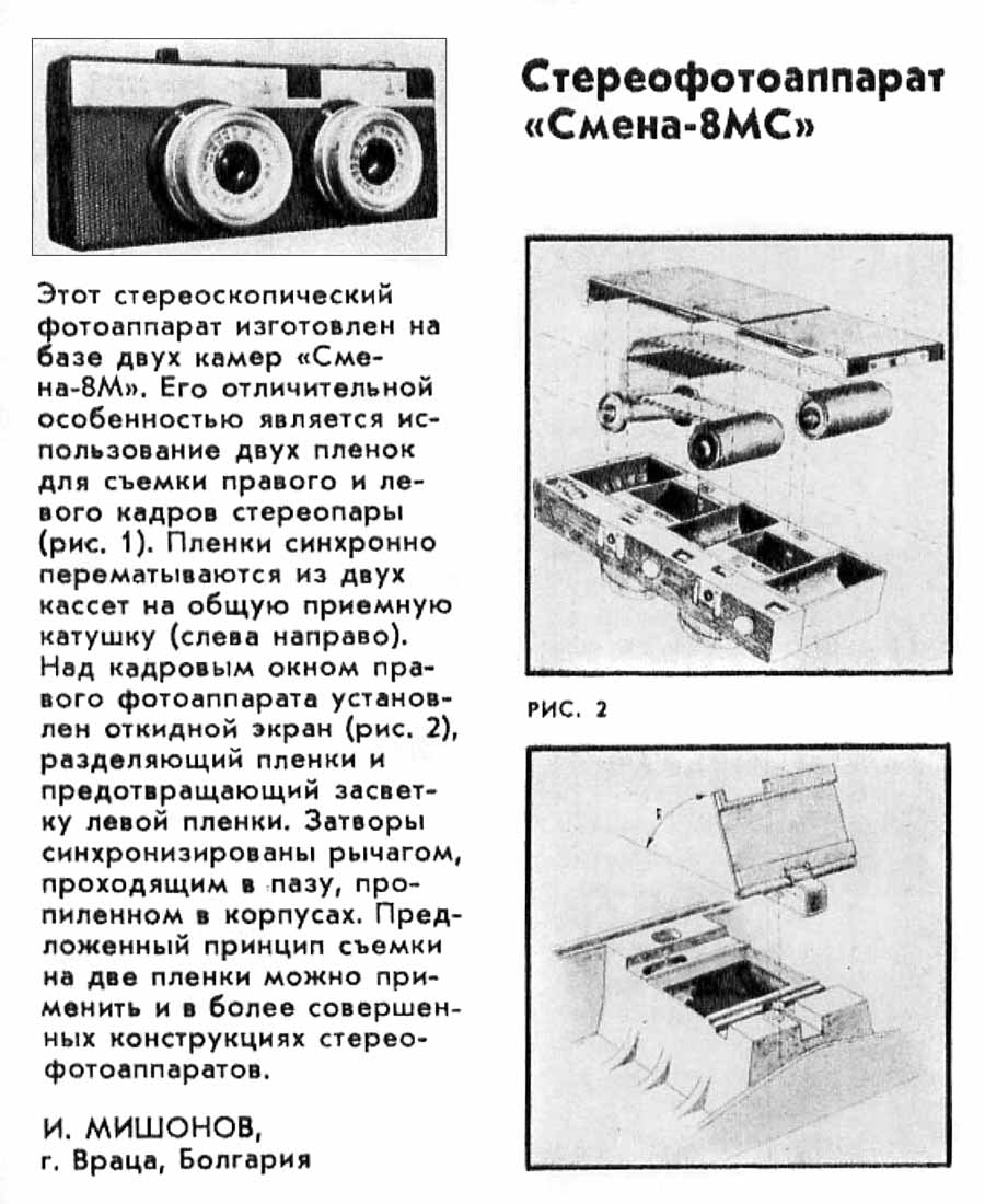 Описание самодельного варианта фотоаппарата "Смена-8МС" из журнала "Советское