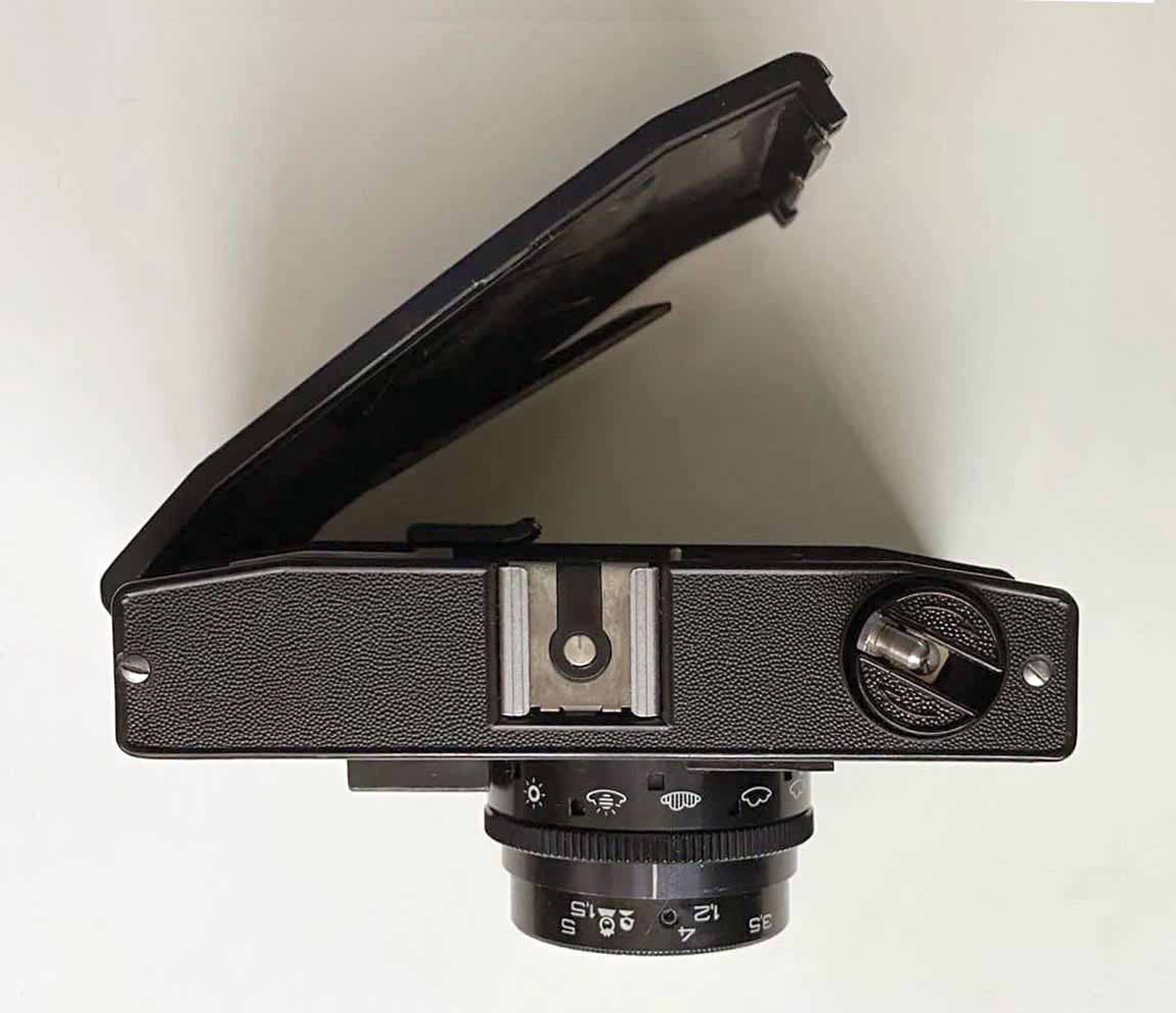совмещённым курковым взводом затвора и перемотки плёнки и рукояткой обратной