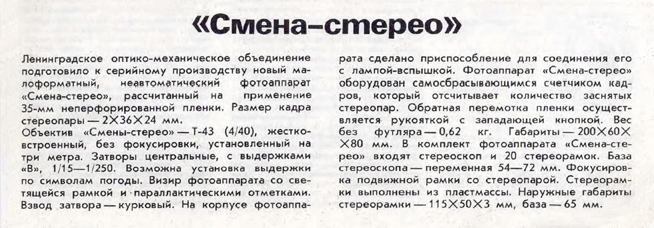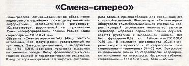 объединение. Фотоаппарат "Смена-стерео" предназначен для съёмки объектов