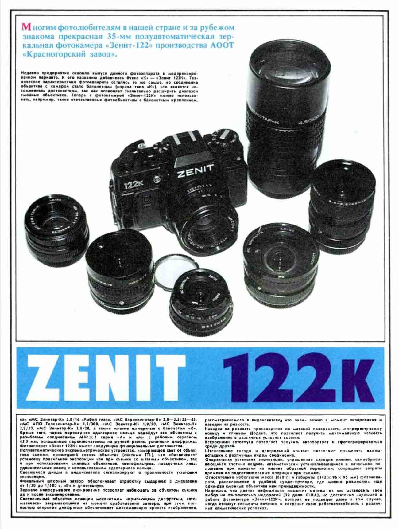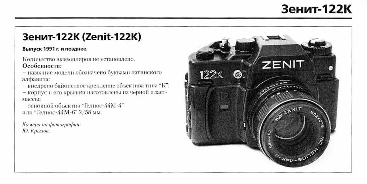 выпускался с 1991 года на АООТ "Красногорский завод". Фотоаппарат "Зенит-122к"