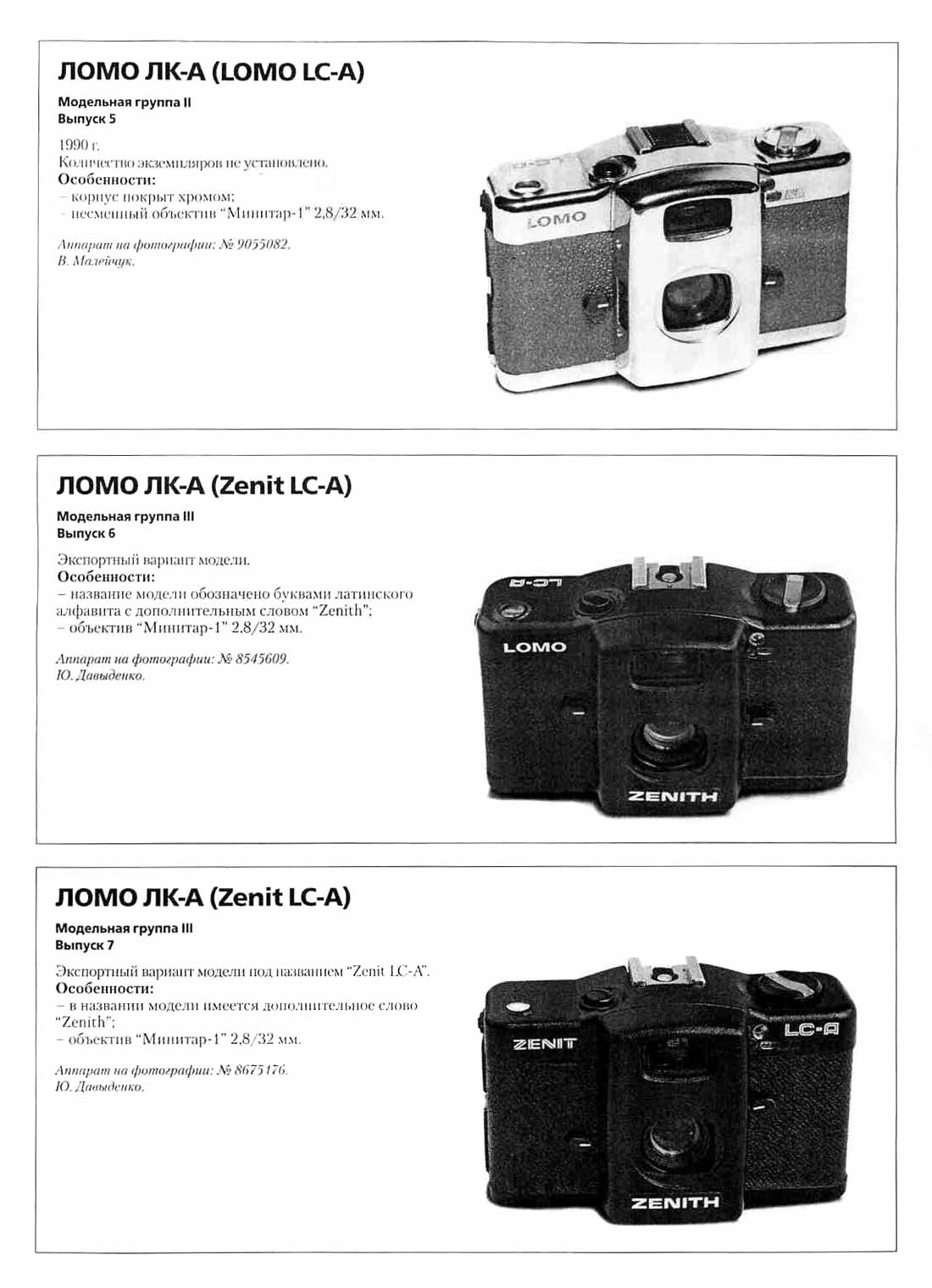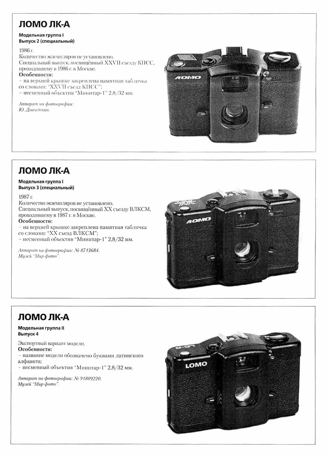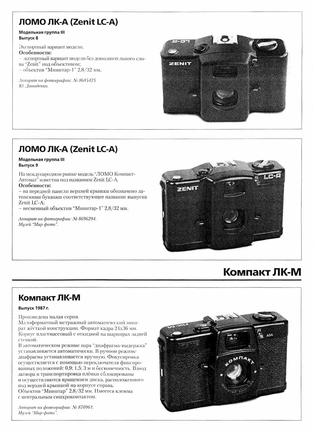 "Ломо ЛК-А" (1982), "Ломо ЛК-М" (1987) и "Компакт ЛК-М2 (1980) семейства