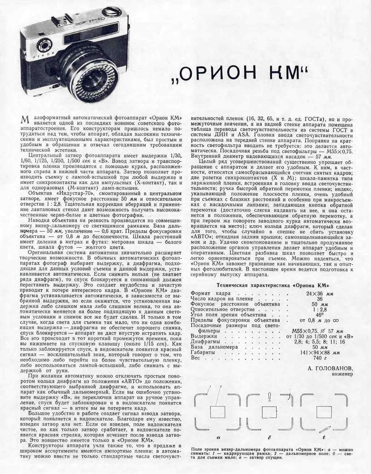 Подробнее о фотоаппарате "Орион КМ"
