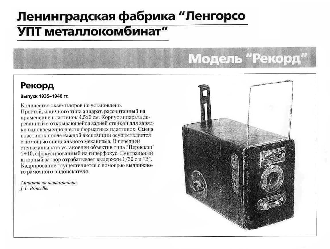 Фотоаппарат "Рекорд" с 1935 по 1940 годы выпускала Ленинградская фабрика "Ленгорсо УПТ металлокомбинат".