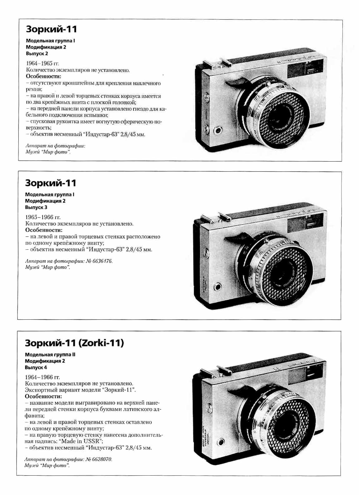 по 1967 годы выпускалась модель "Зоркий-11", отличавшаяся отсутствием дальномера.