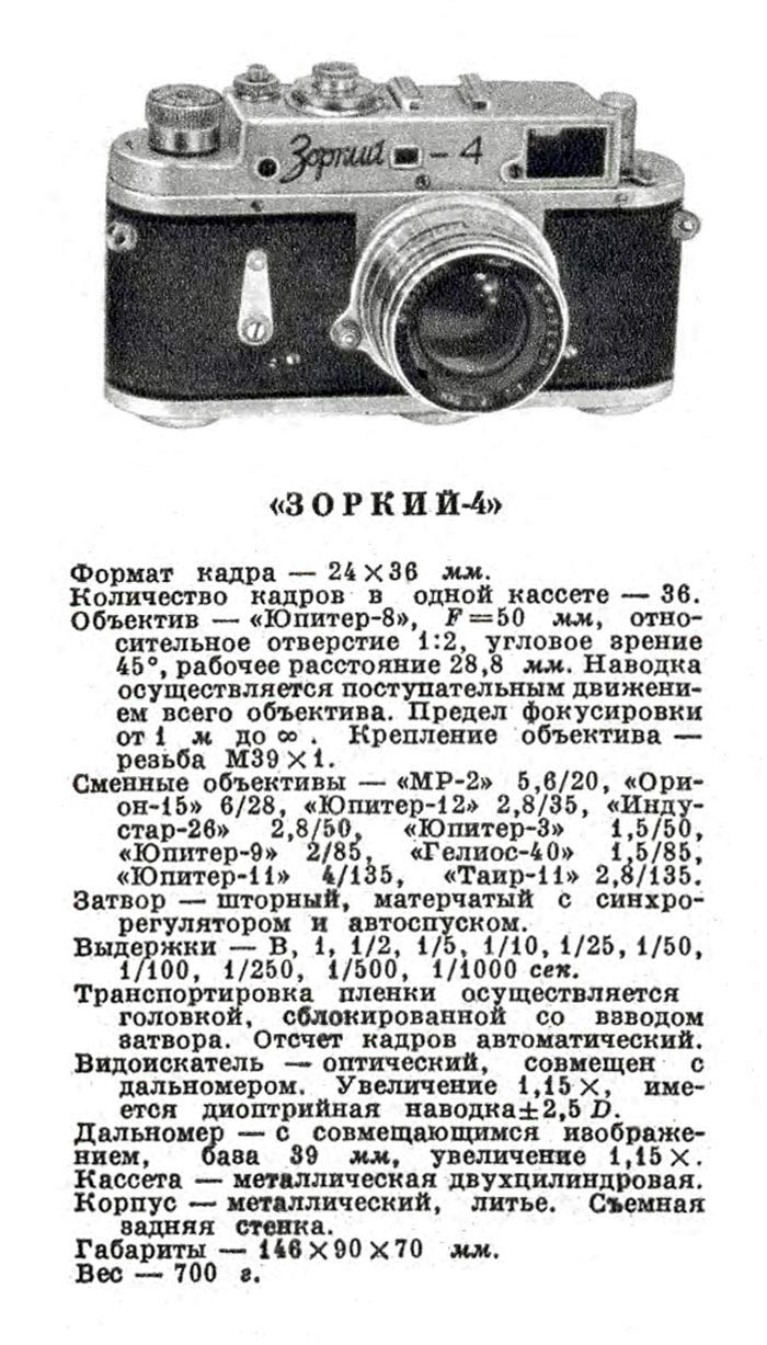 Московской области. "Зоркий-4" - это дальномерный малоформатный фотоаппарат,