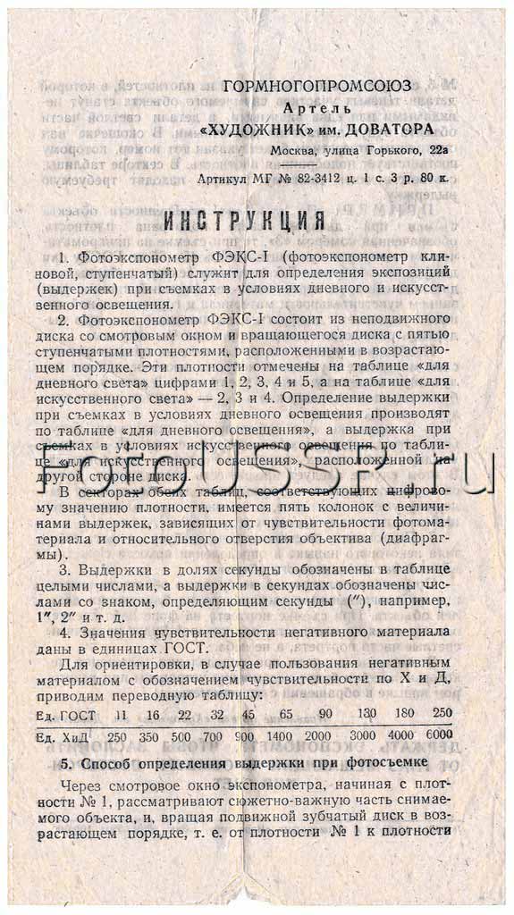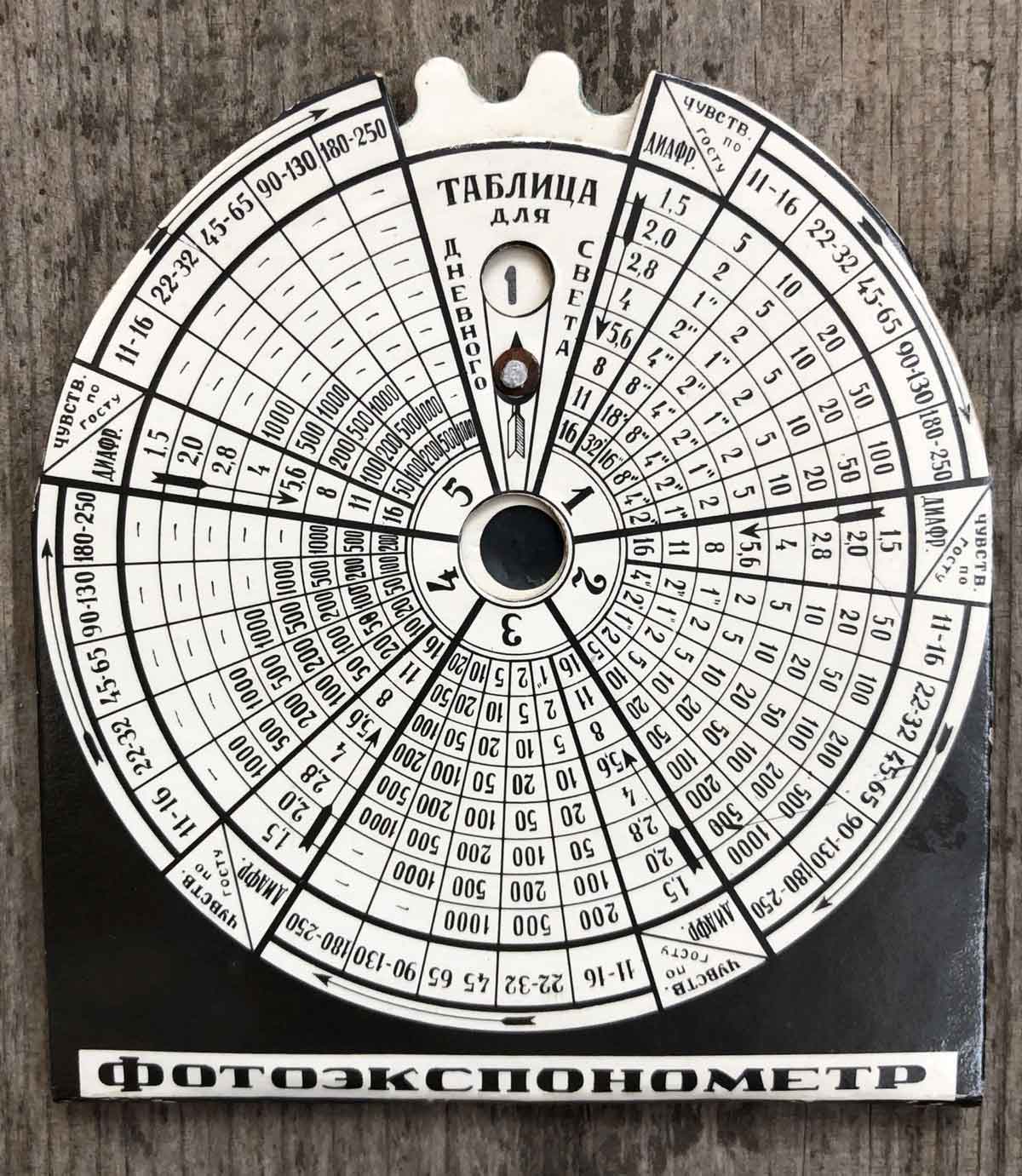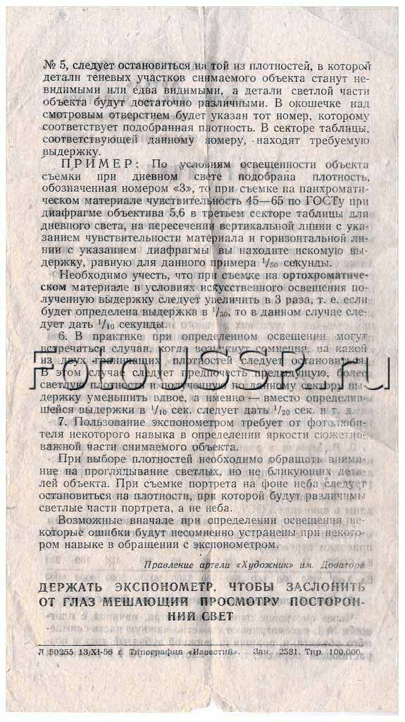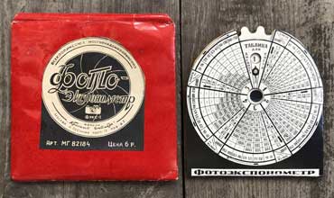 октябрь", "Художник" и "25 лет Октября". Экспонометр состоит из картонной