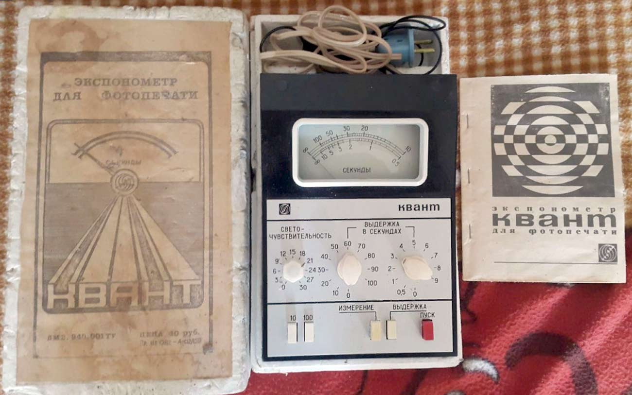 Экспонометр для фотопечати "Квант" выпускался с 1977 года Боярским машиностроительным заводом "Искра". Служит для автоматической экспозиции при ФП.