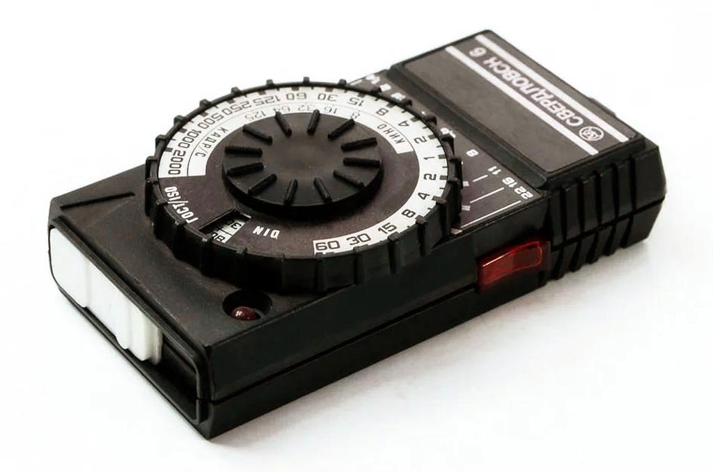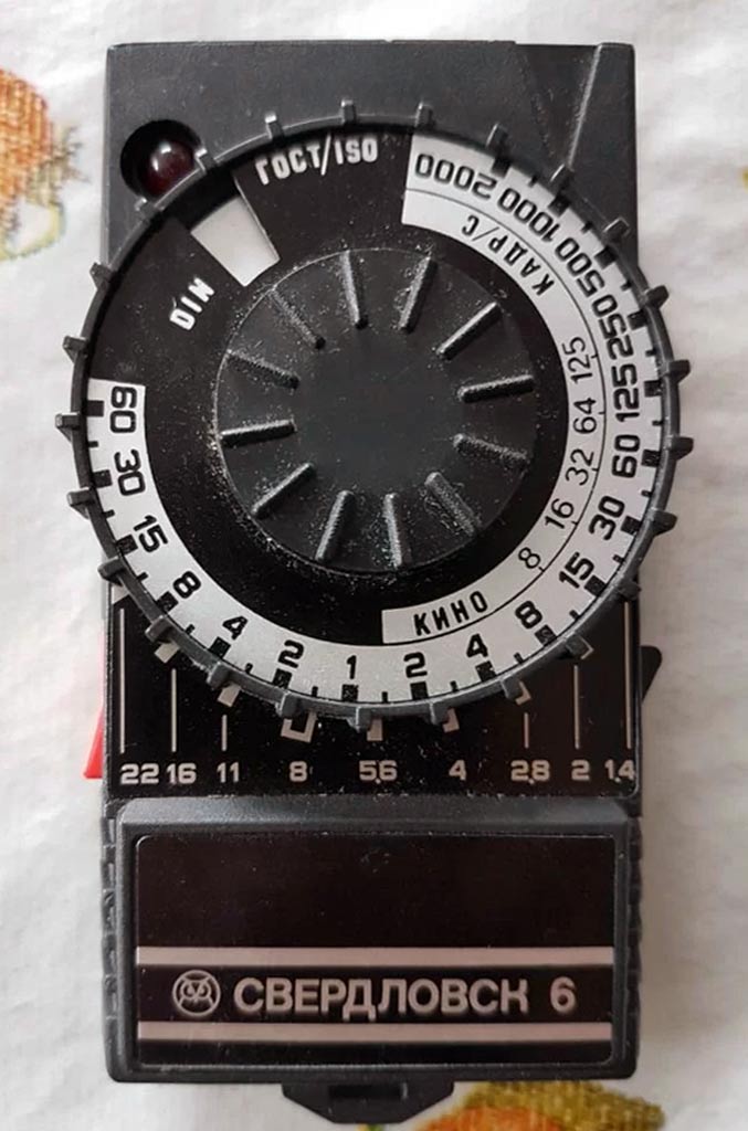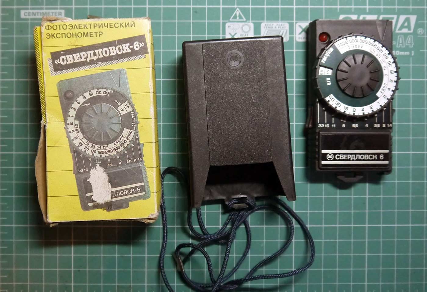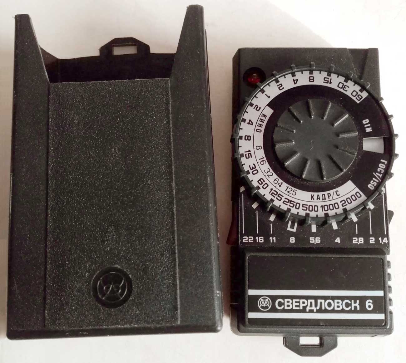 Экспонометр фотоэлектрический "Свердловск-6" выпускал с 1990 года Уральский оптико-механический завод. Служит для определения экспозиции при кино / фото съёмке.