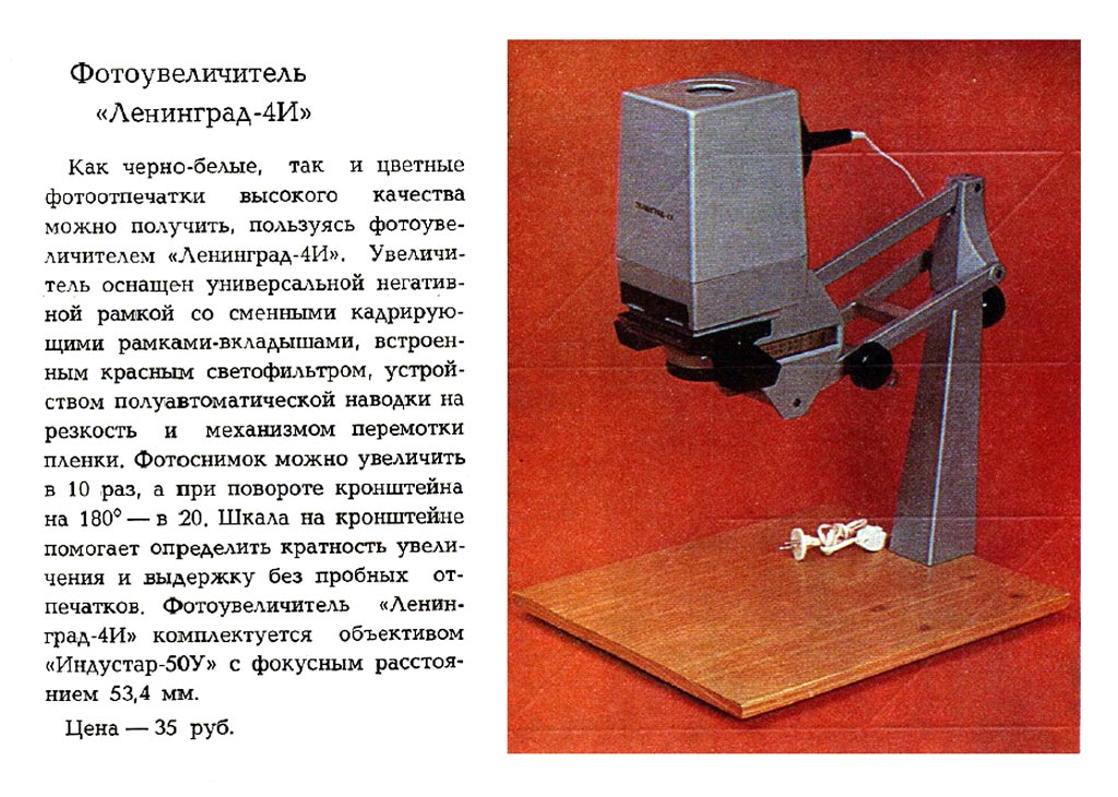 "Ленинград-4" выпускался с 1970 года в Ленинграде. Фотоувеличитель предназначен