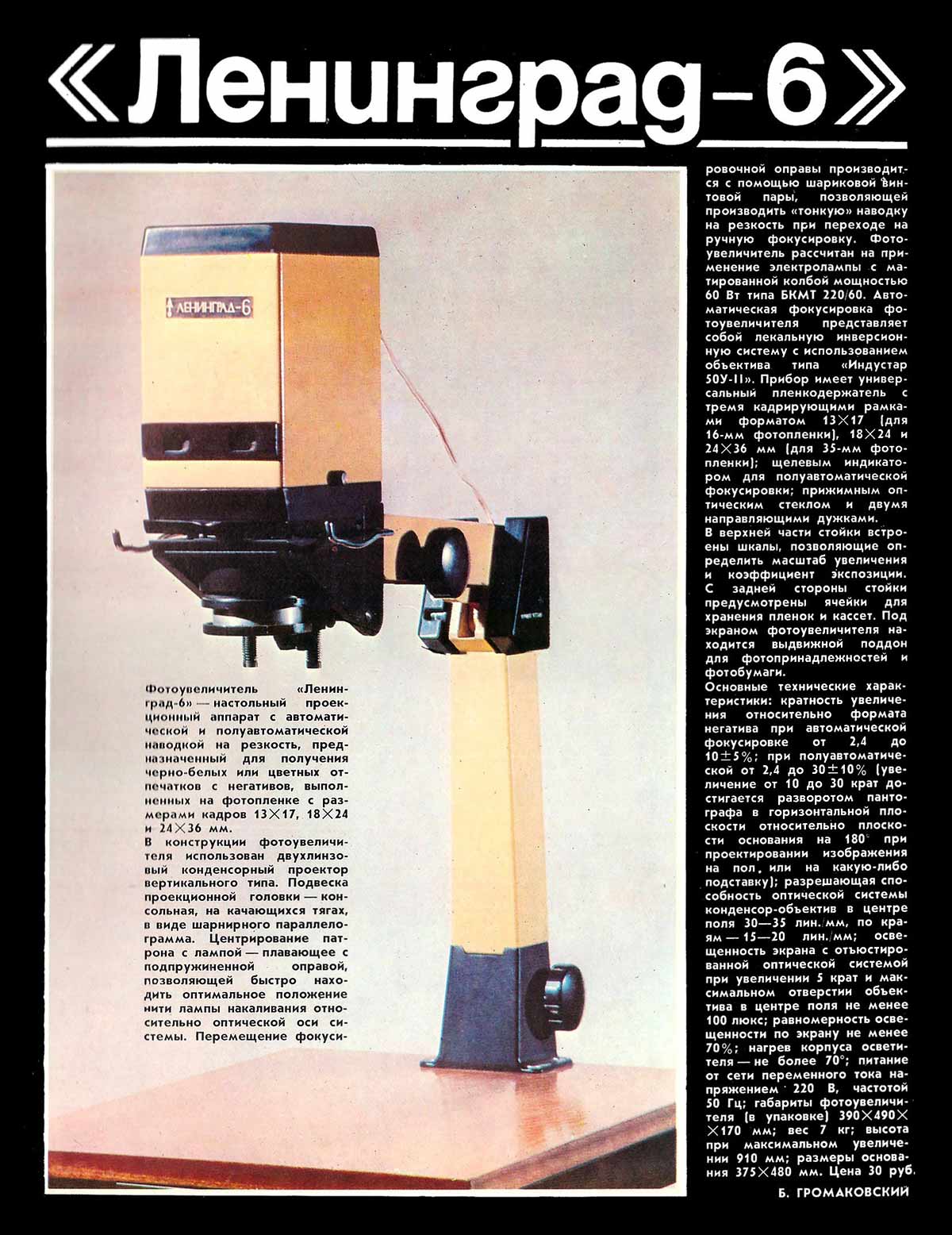 выпускал фотоувеличитель "Ленинград-6У", а наверное с 1982 года фотоувеличитель