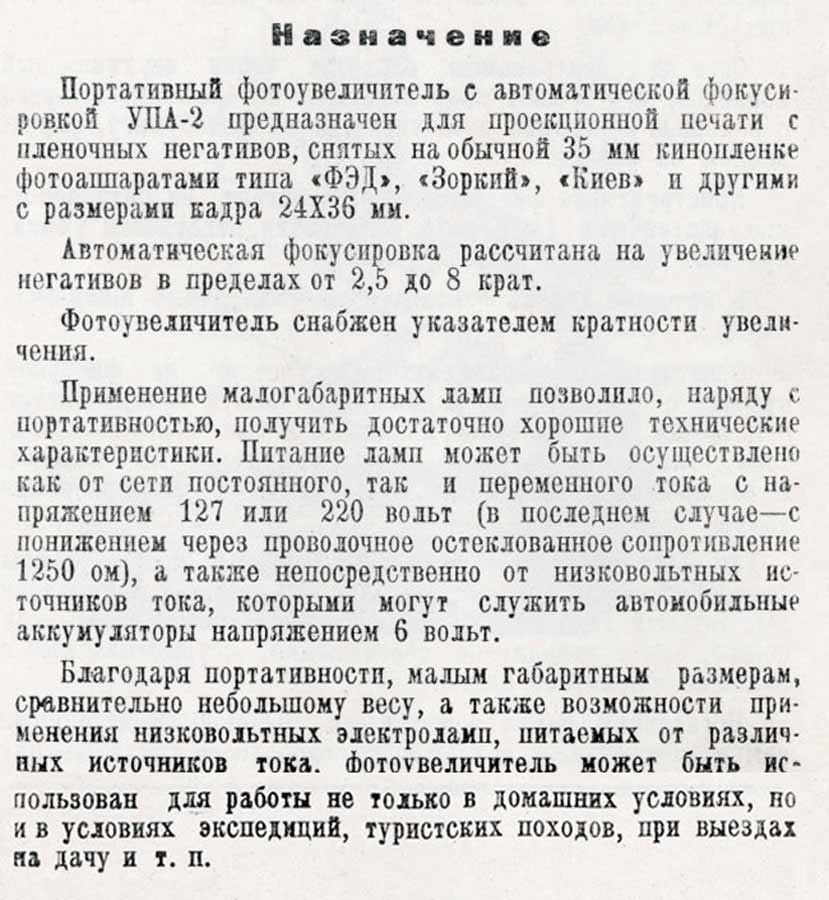 Фотоувеличитель "УПА-2" выпускался
