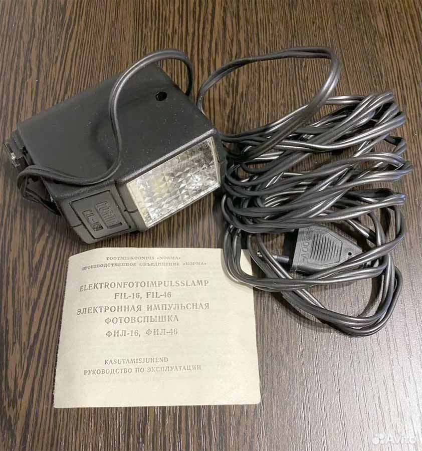 Электронная импульсная фотовспышка "FIL-16" выпускалась с 1988 года Таллиннской компанией "Norma". Является аналогом фотовспышки "FIL-46".