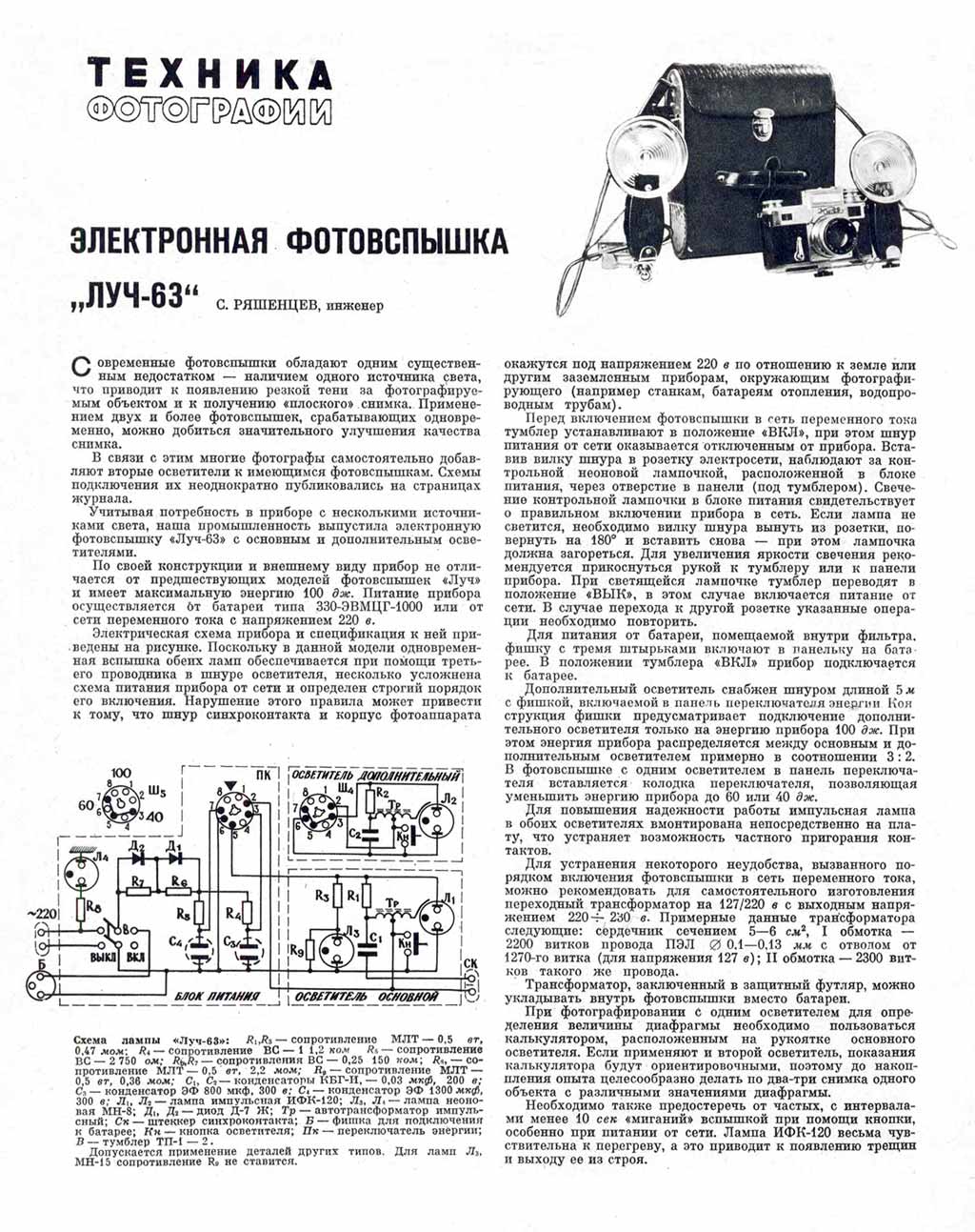 фотовспышка "Луч-63" выпускалась с 1963 года Харьковским заводом "Радиодеталь".