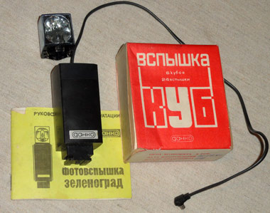 Фотовспышка состоит из двух частей, приставки "ПКФ-2" и вспышки - куба.