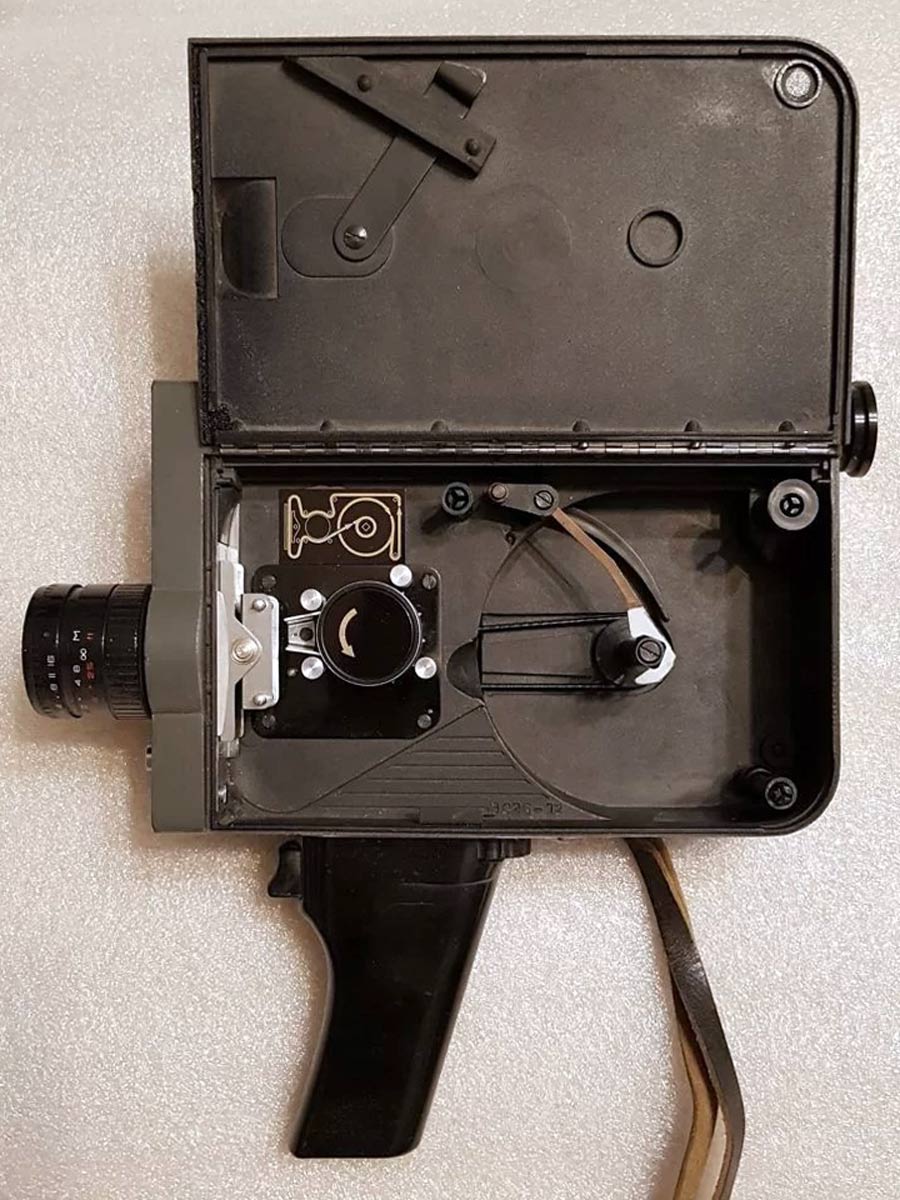 Камера предназначена для съёмки на 16-мм к-плёнку с одно или двухсторонней