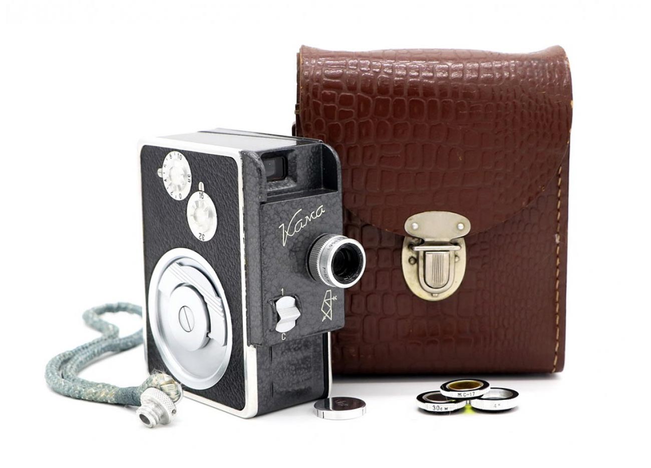 это первая отечественная кинокамера для кинопленки 8 мм, поэтому она продавалась