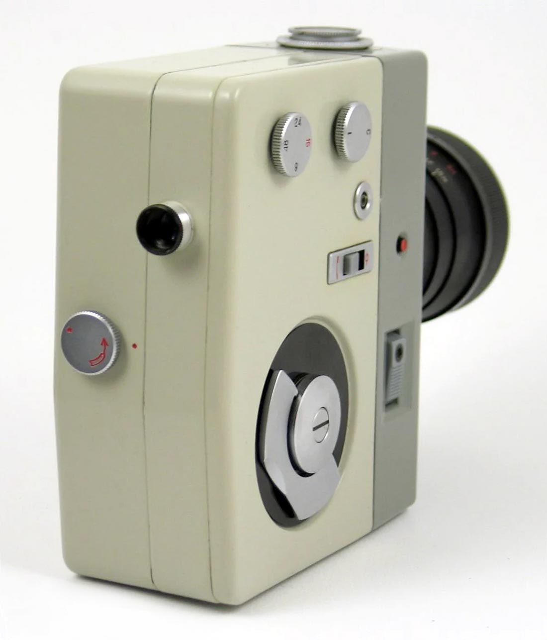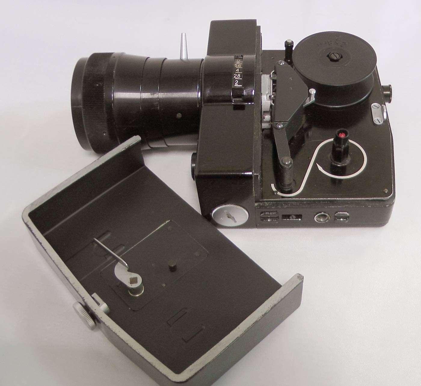 привод при полном заводе протягивает 2 м. пленки. Частота съемки 8, 16,