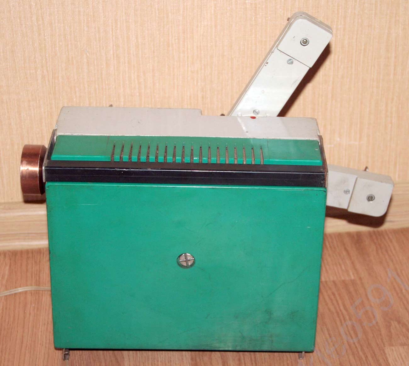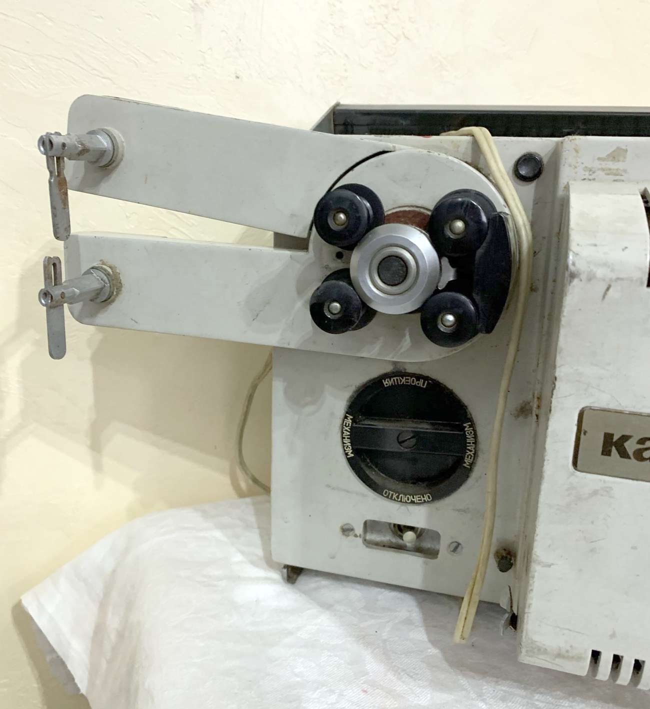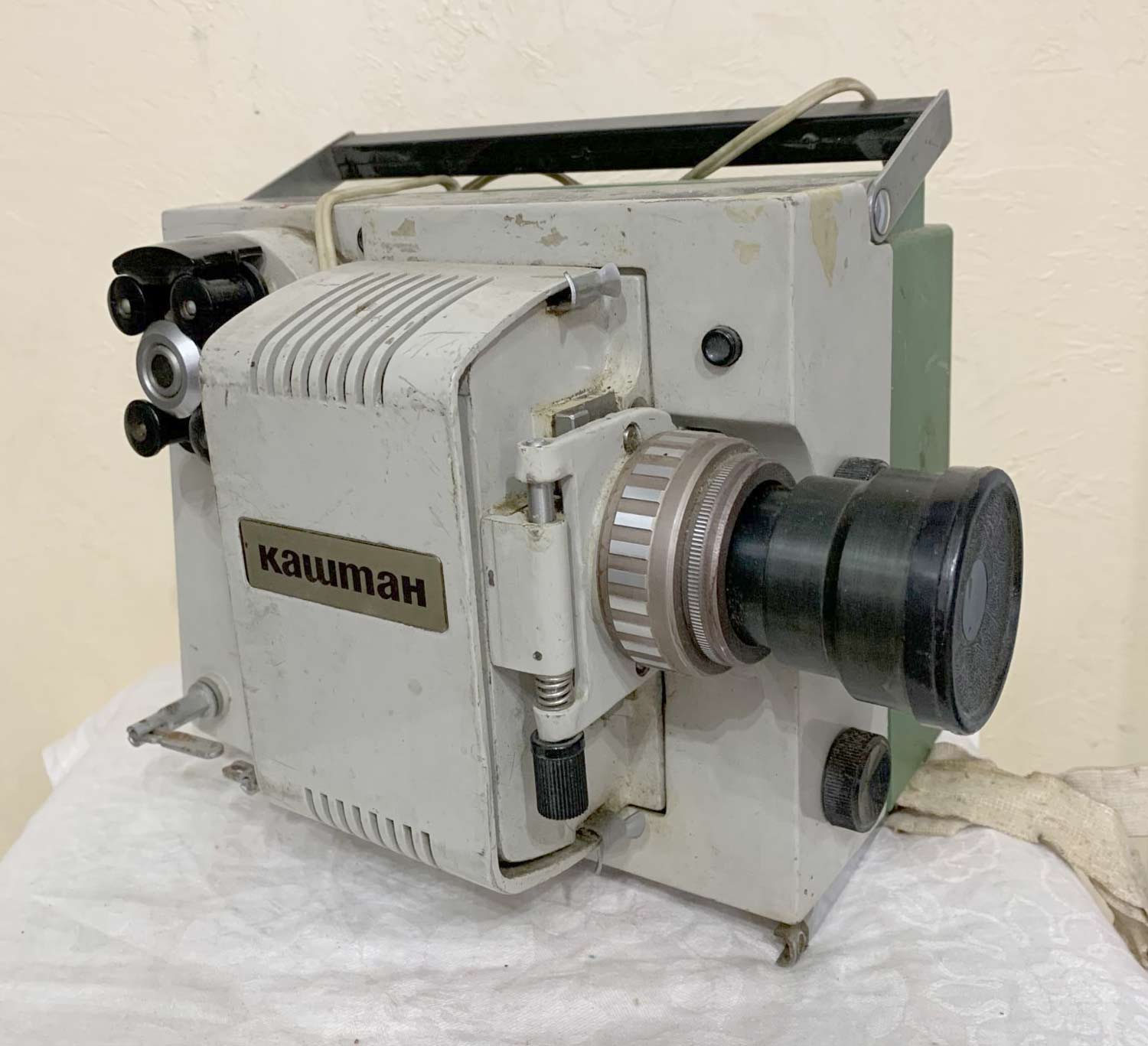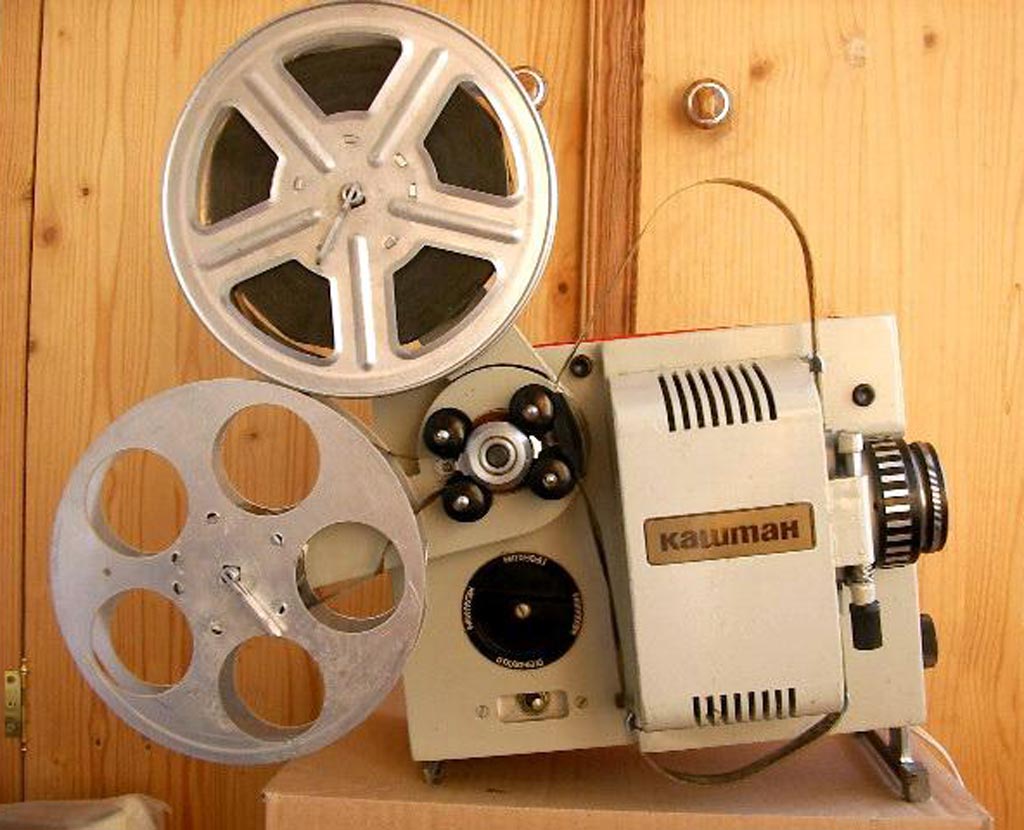 на бобины, вмещающих до 120 м. плёнки. Имеет прямую и обратную проекцию