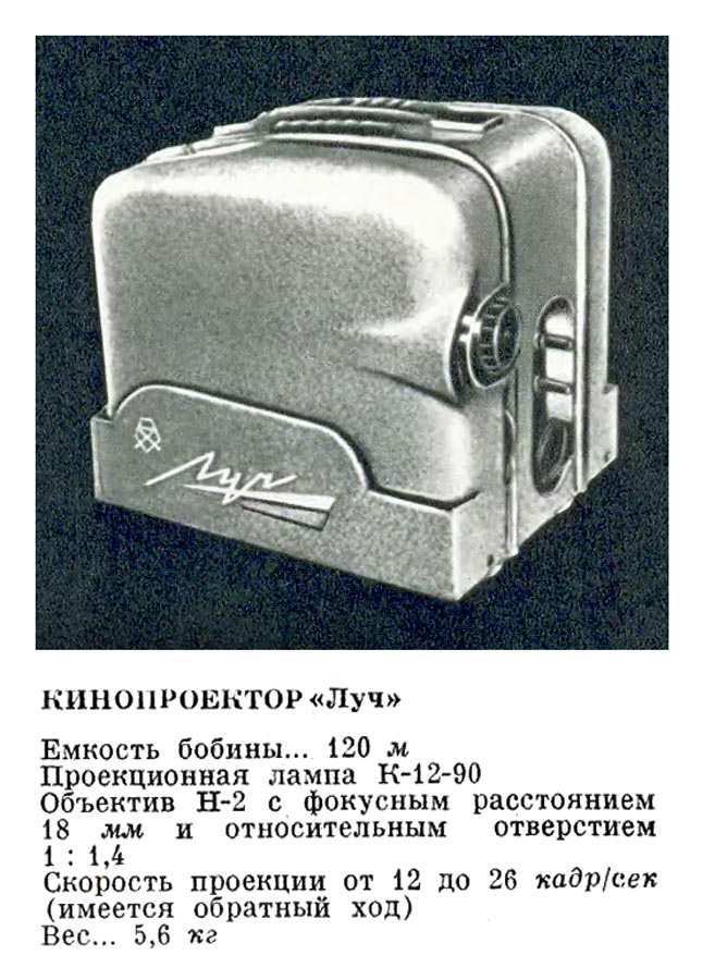 Кинопроектор узкоплёночный "Луч" выпускался с 1964 года Ленинградским ГОМЗ.
