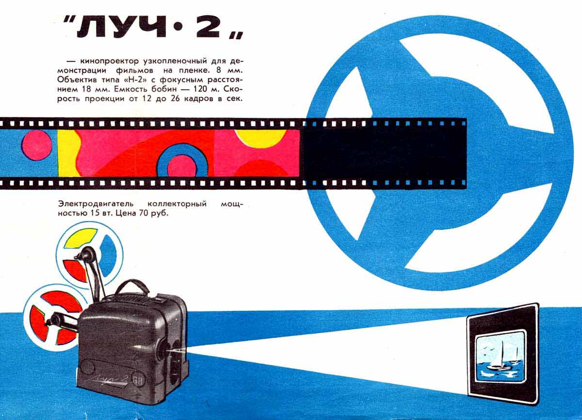 для демонстрации чёрно-белых и цветных 8-мм кинофильмов без звукового сопровождения.