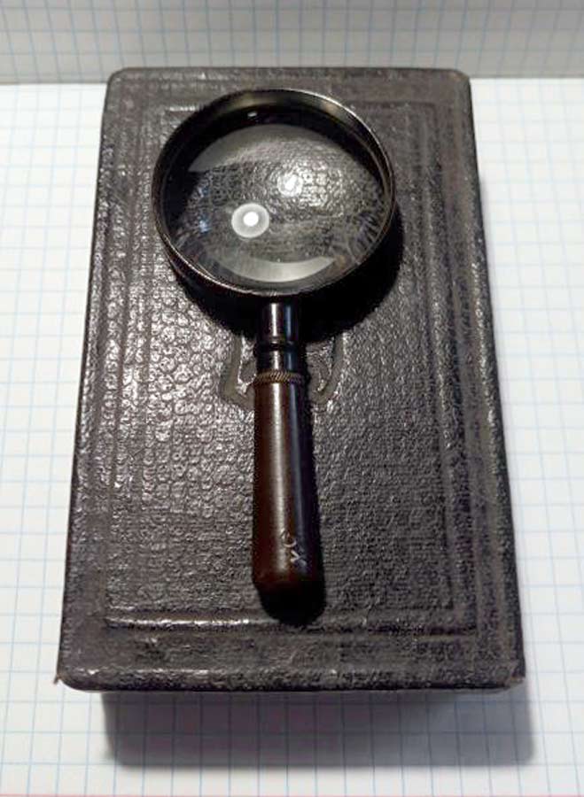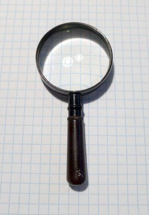 Лупа в деревянной коробке выпускалась предположительно с 1952 года Харьковским Заводом Медицинской Аппаратуры. Увеличение 5-ти кратное.