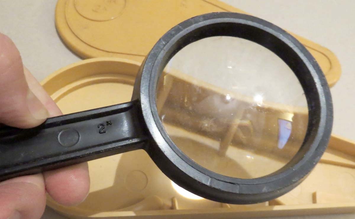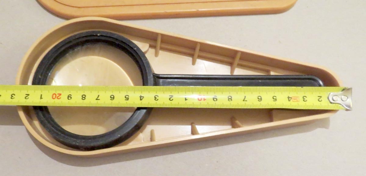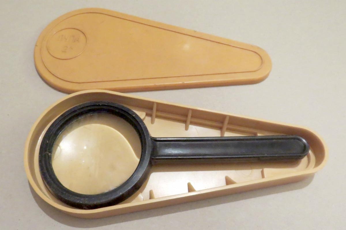 Детская лупа (увеличительное стекло) производилось предположительно с 1975 года Ленинградским Оптико-Механическим Объединением (ЛОМО). Предназначена детям. Увеличение лупы 2 Х.