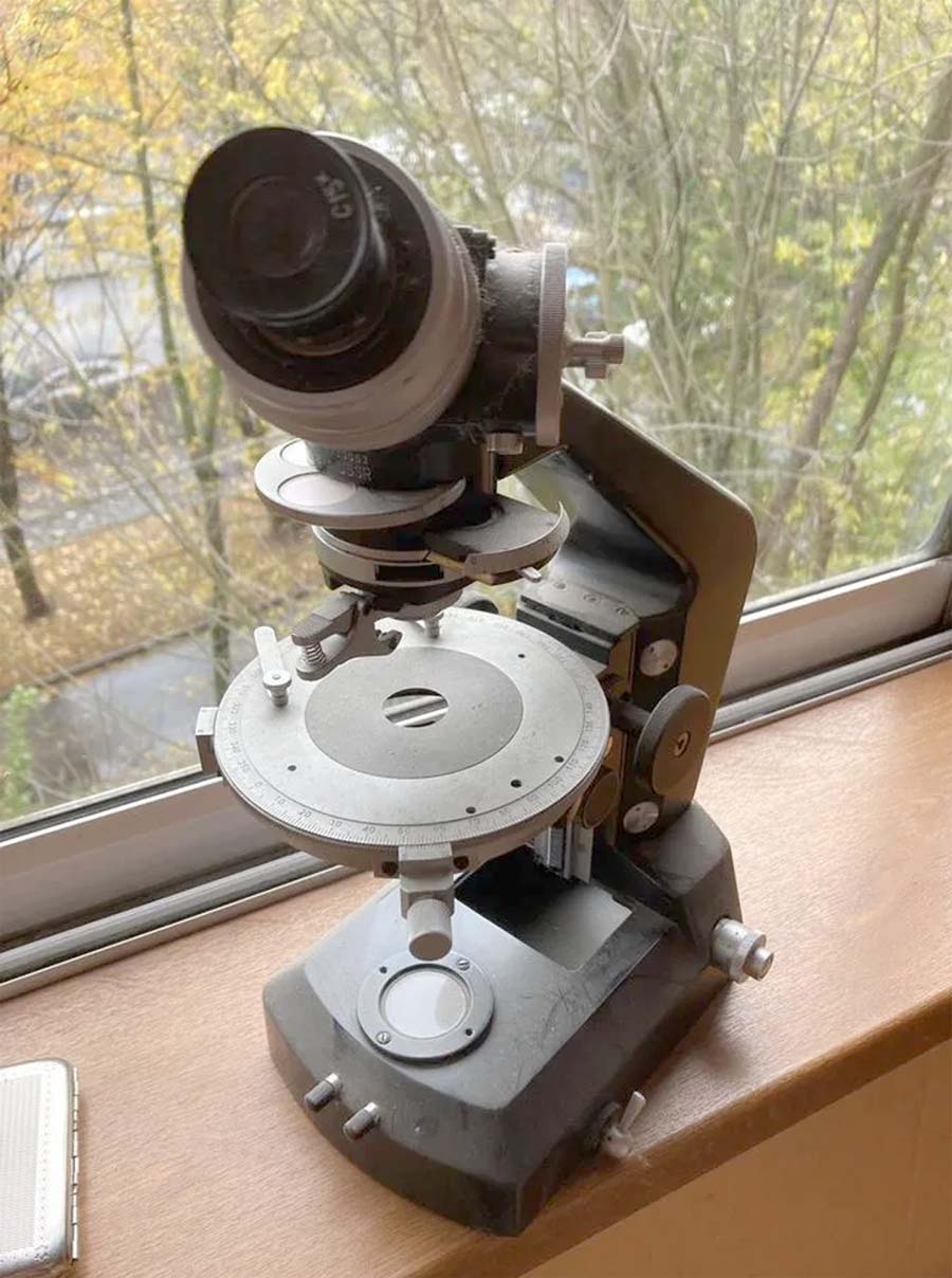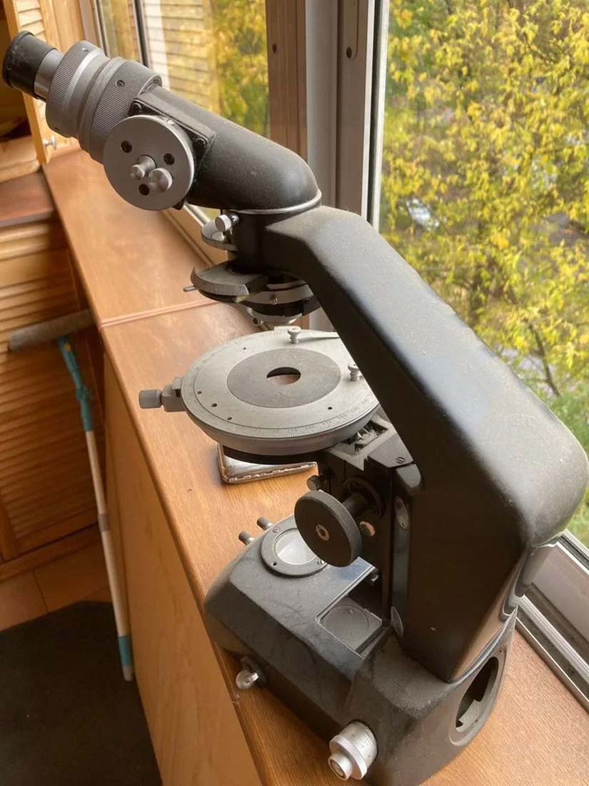 в проходящем или поляризованном свете. Может применяться в минералогии,