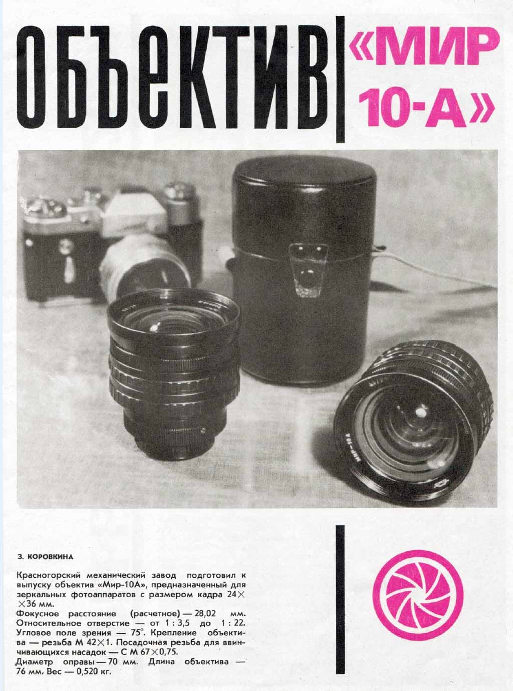 Объектив предназначен для зеркальных фотоаппаратов с резьбовым соединением