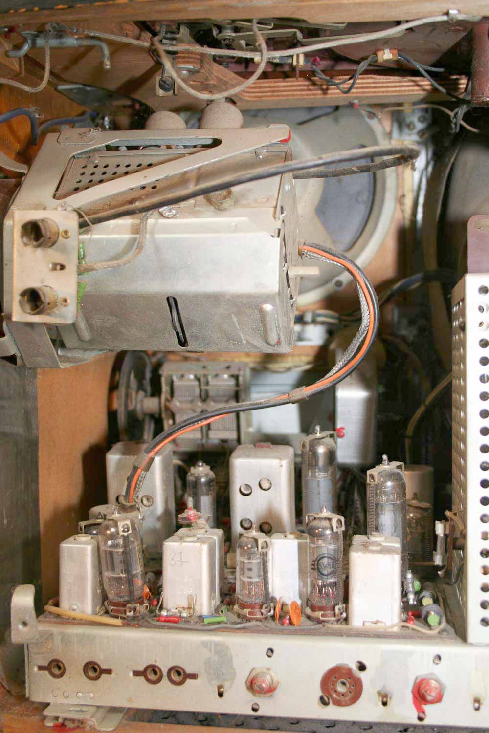 что облегчает доступ к лампам и другим элементам. Шасси горизонтальное,