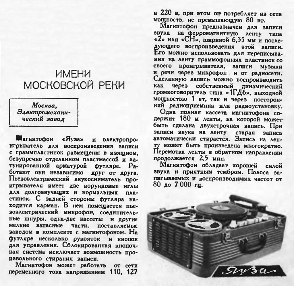 "Яуза" (первенец завода) с 1956 года выпускал Московский ЭМЗ №1. Аппарат