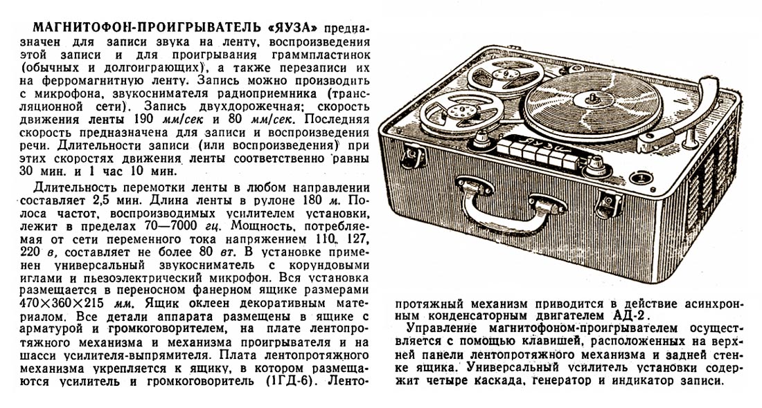состоит из магнитофона и проигрывателя пластинок. Магнитофон рассчитан