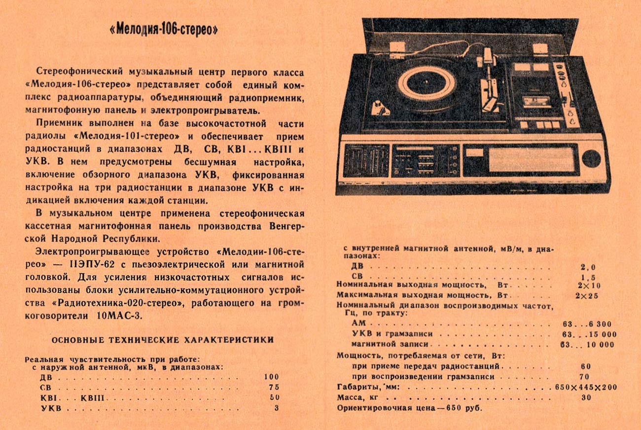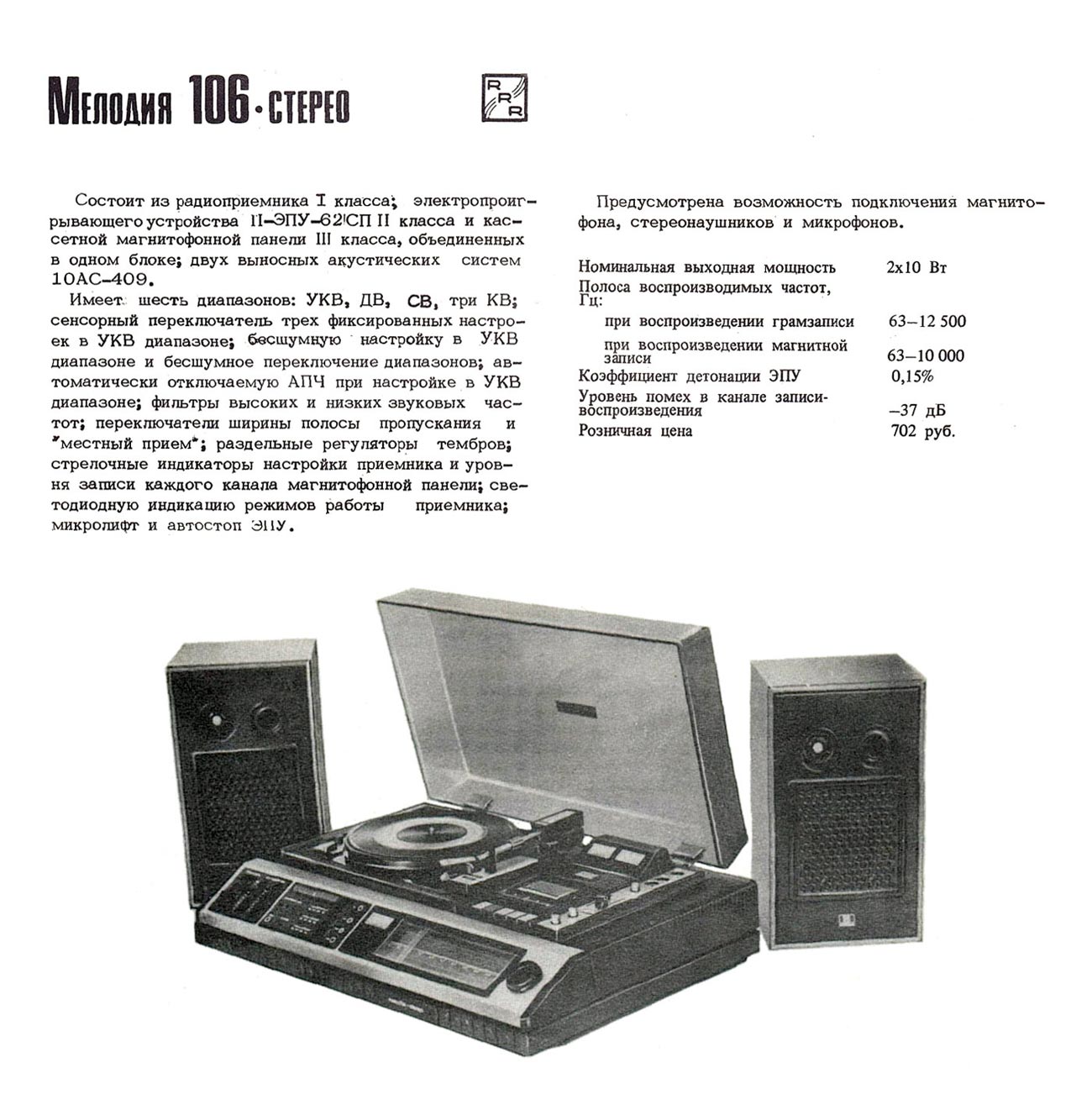 центр "Мелодия-106 стерео" с 1978 года выпускал Рижский радиозавод имени