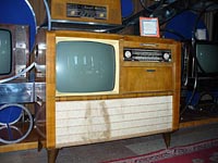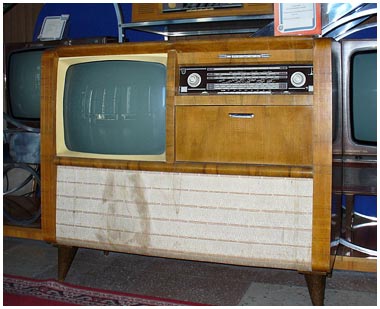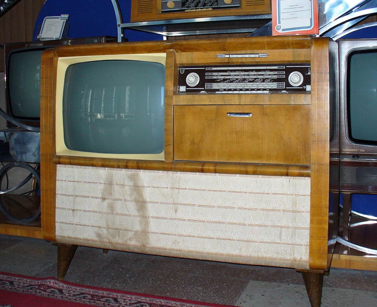 Телерадиола объединяет телевизор УНТ-59, на кинескопе 59ЛК1Б