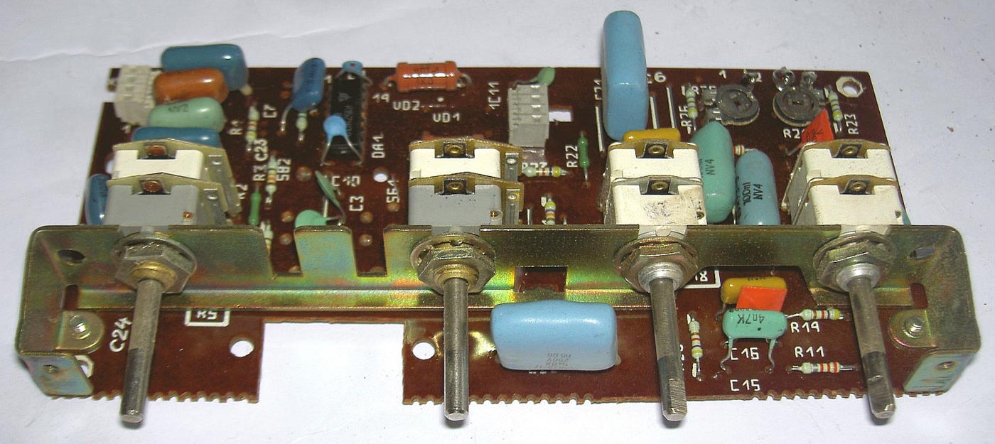 АС - S-30. В модели имеются: АПЧ, БШН. Регуляторы громкости, тембров, баланса,