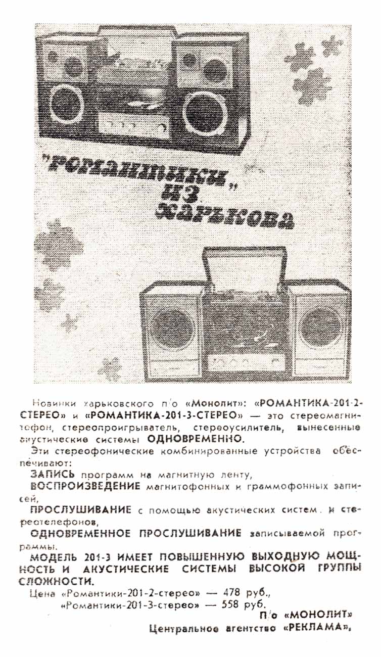 Стереокомплекс "Романтика-201-3-стерео" - две последние