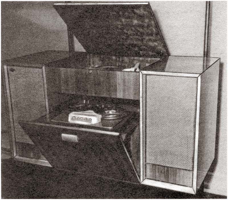 усилитель и 2 громкоговорителя 5ГД-10. Для проигрывания грампластинок использован