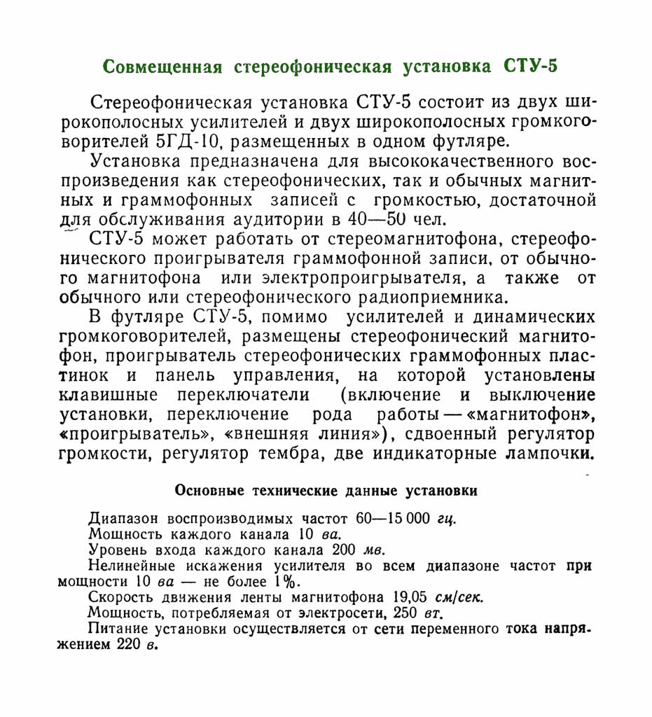 записи и для записи и воспроизведения музыки и речи. Установка имеет двухканальный