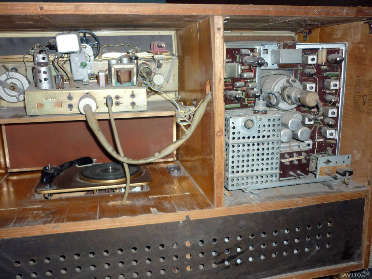 и проигрывания обычных и долгоиграющих пластинок. Телерадиола смонтирована