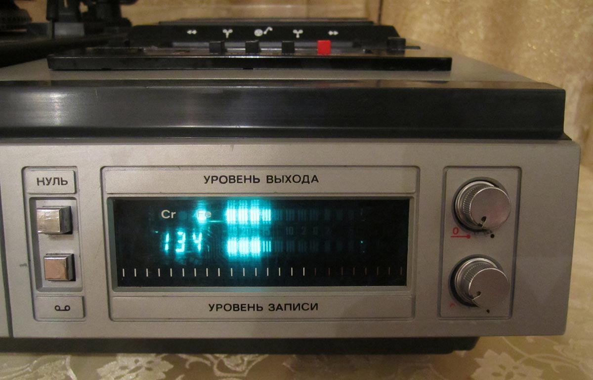 счетчик расхода ленты, электронный индикатор для уровня записи и воспроизведения,