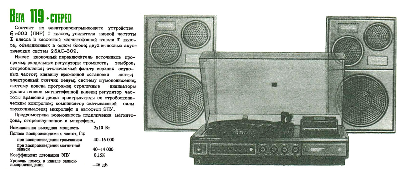 устройство - магнитоэлектрофон "Вега-119-стерео" с начала 1986 года выпускало