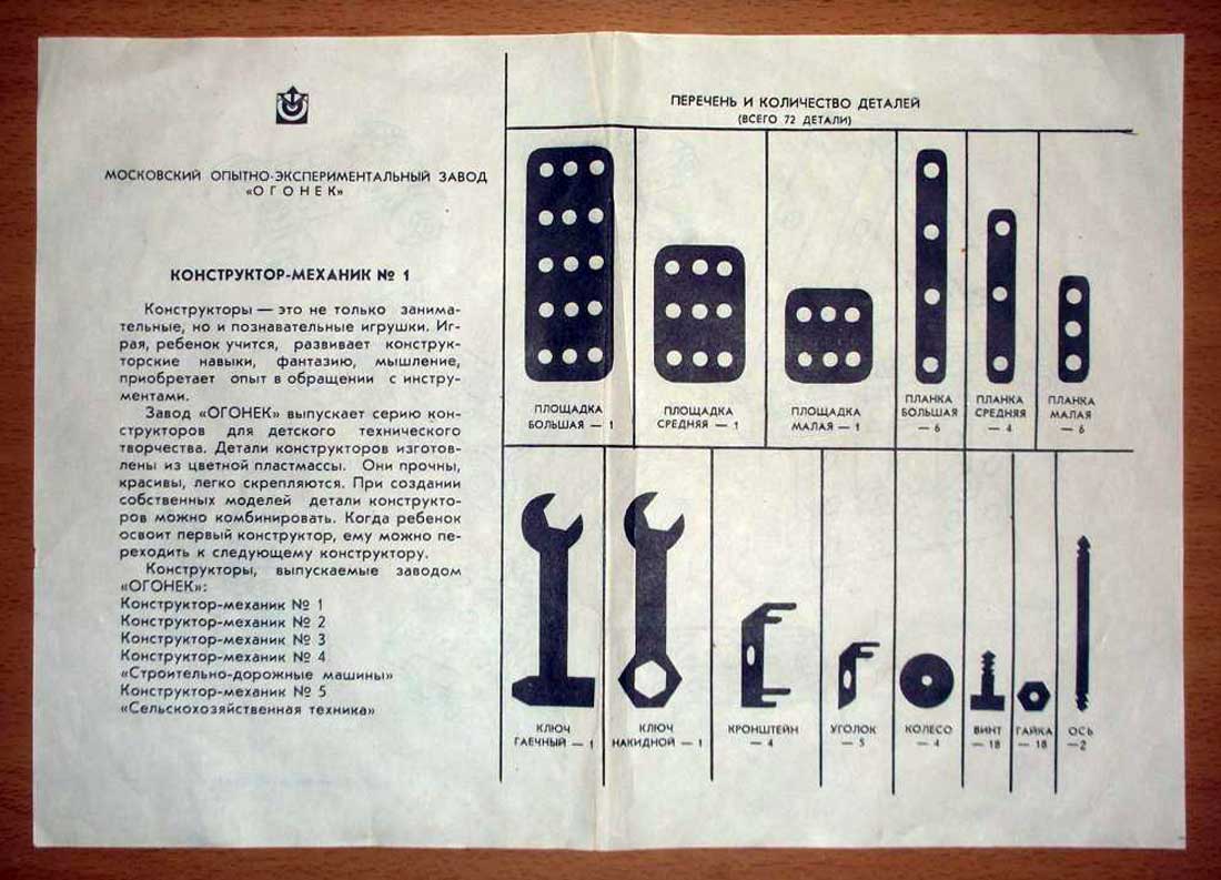 конструирования. Заводы страны выпускали наборы "Конструктор-механик №