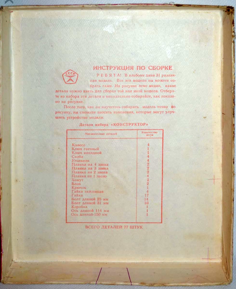 Набор для сборки моделей из пластмассы "Конструктор" производился возможно с 1977 года Бийским химическим комбинатом. "Конструктор" позволяет детям до 9 лет собрать 31 пластмассовую модель.