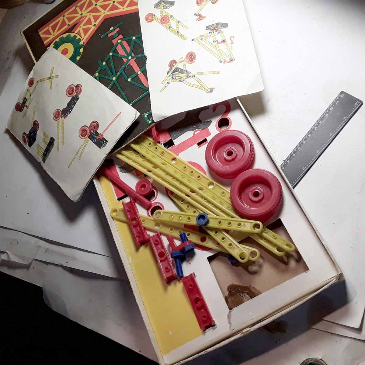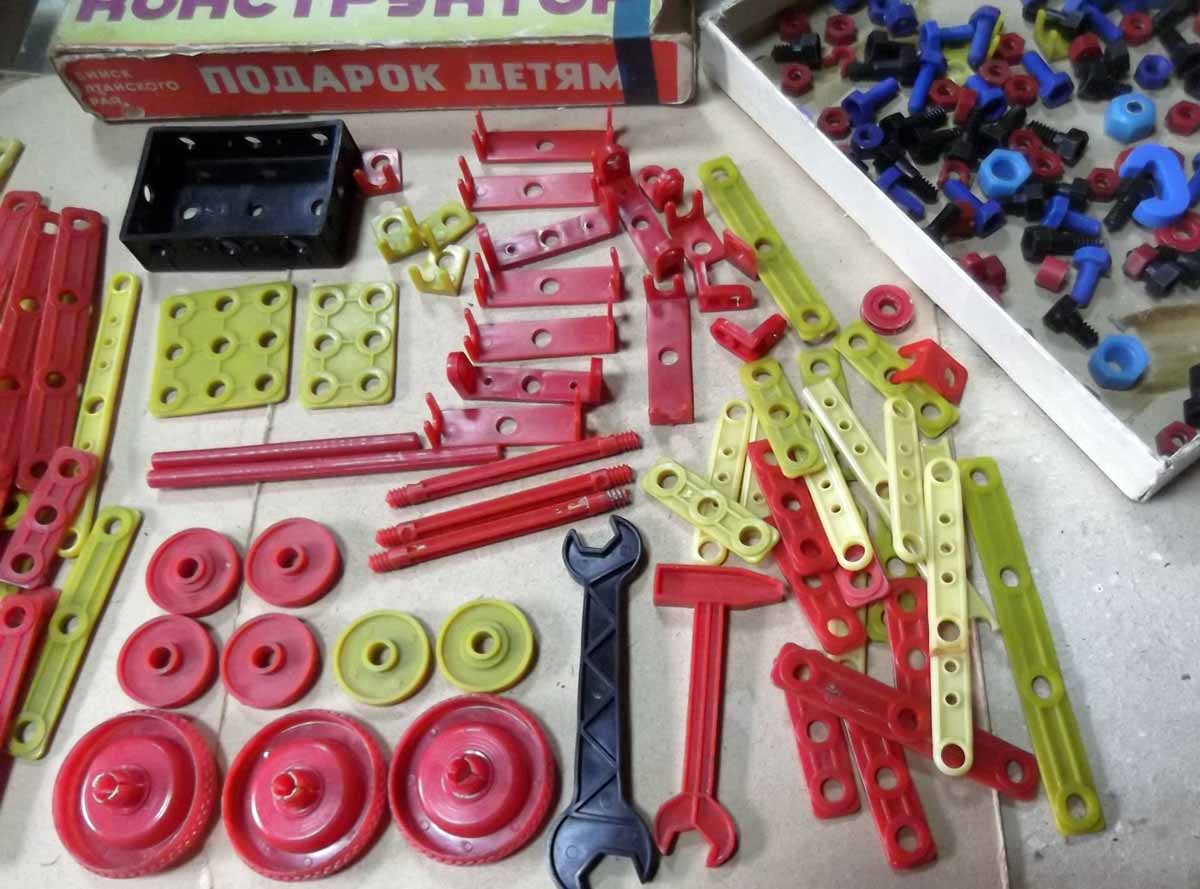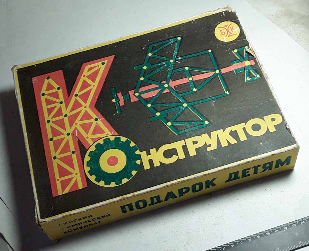 Конструктор "Подарок детям" производился предположительно с 1974 года Бийским химическим комбинатом. Механический пластмассовый конструктор предназначен для сборки моделей детьми от 7 до 12 лет.