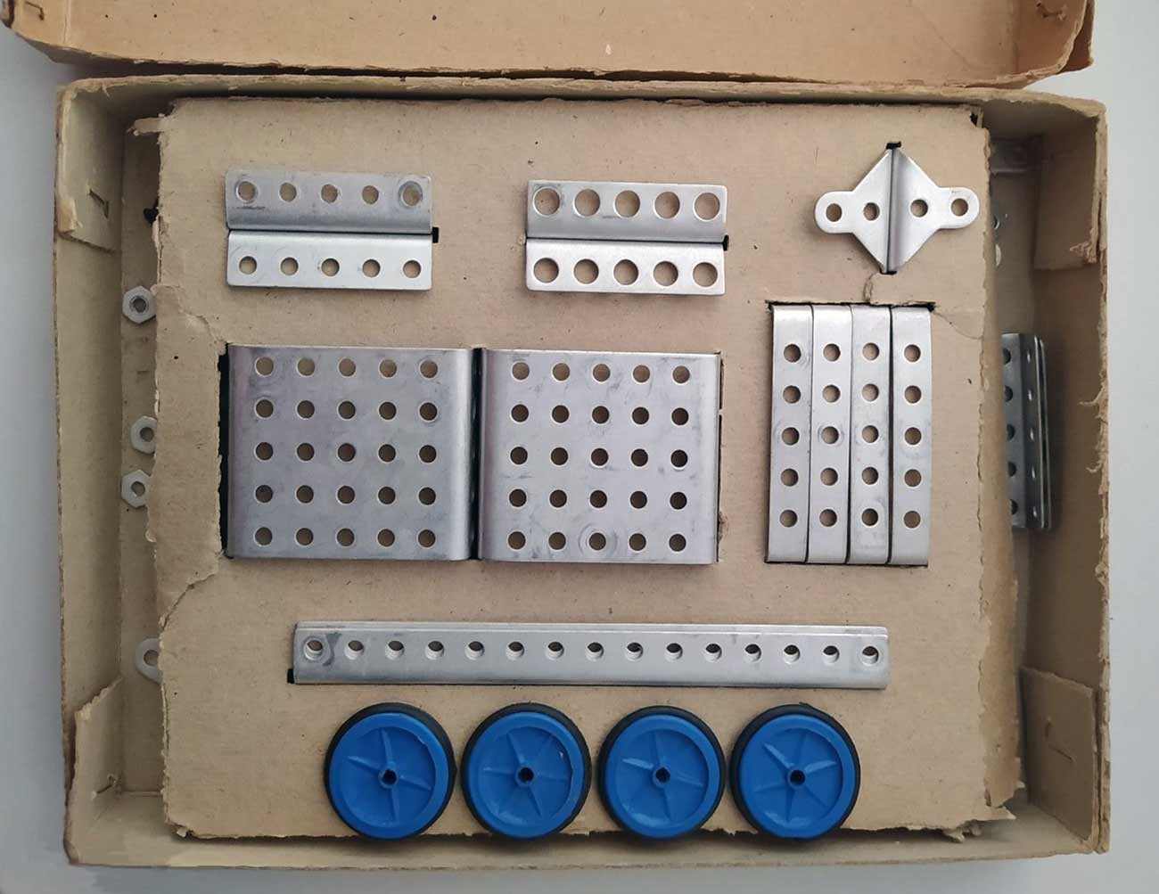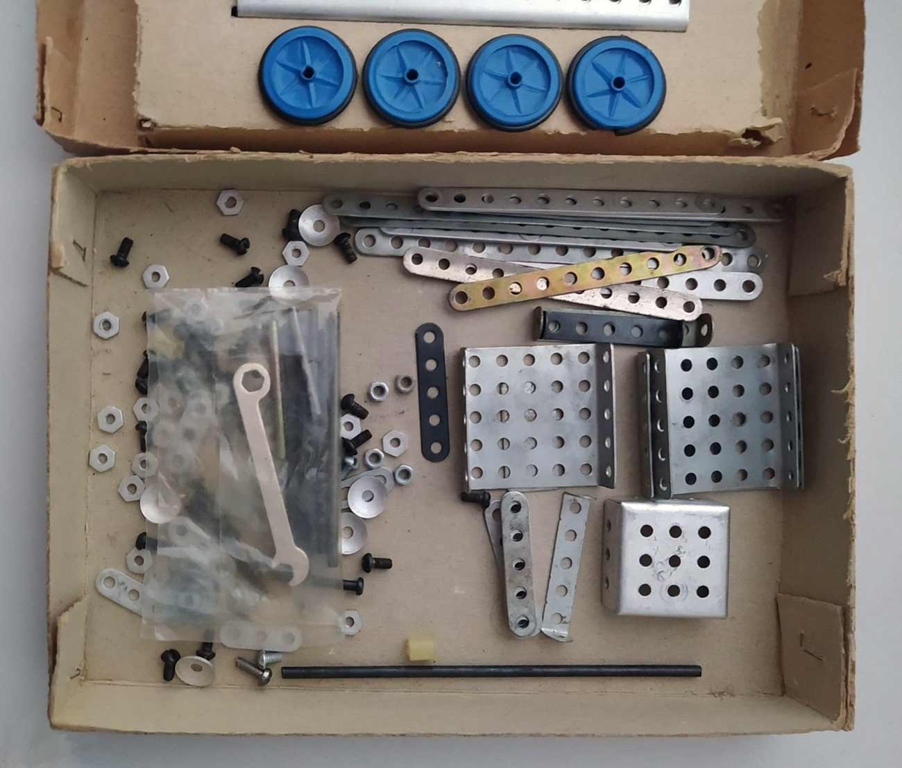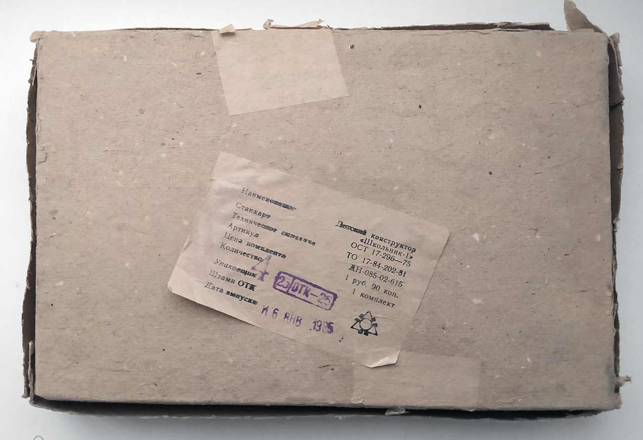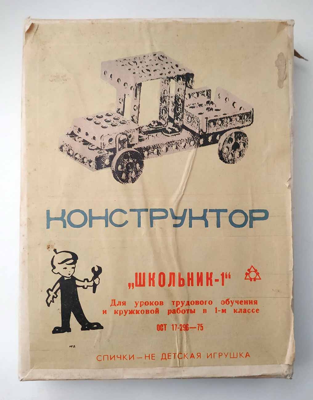 Механический конструктор "Школьник-1" производился предположительно с 1983 года. Предназначен для уроков трудового обучения и кружковой работы в 1-м классе общеобразовательной школы.