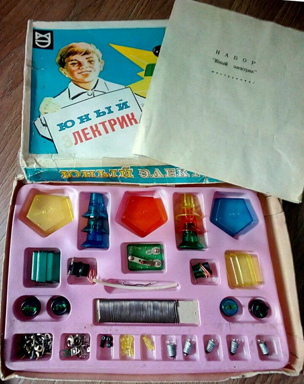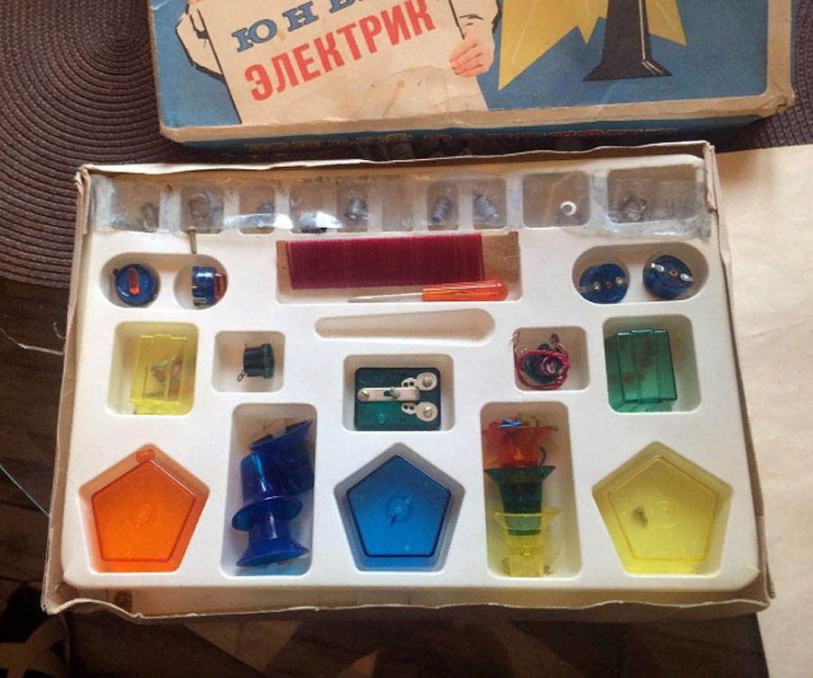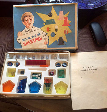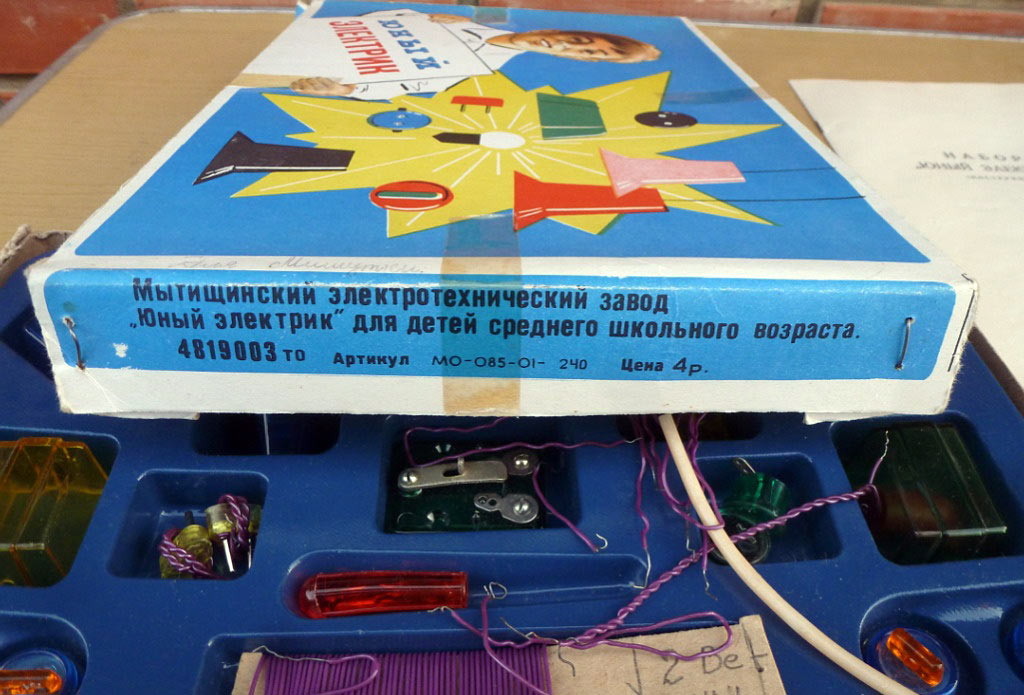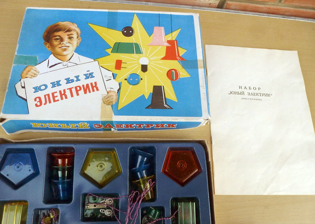 Набор "Юный электрик" выпускался с 1977 года Мытищинским электротехническим заводом. Набор предназначен для детей среднего школьного возраста.