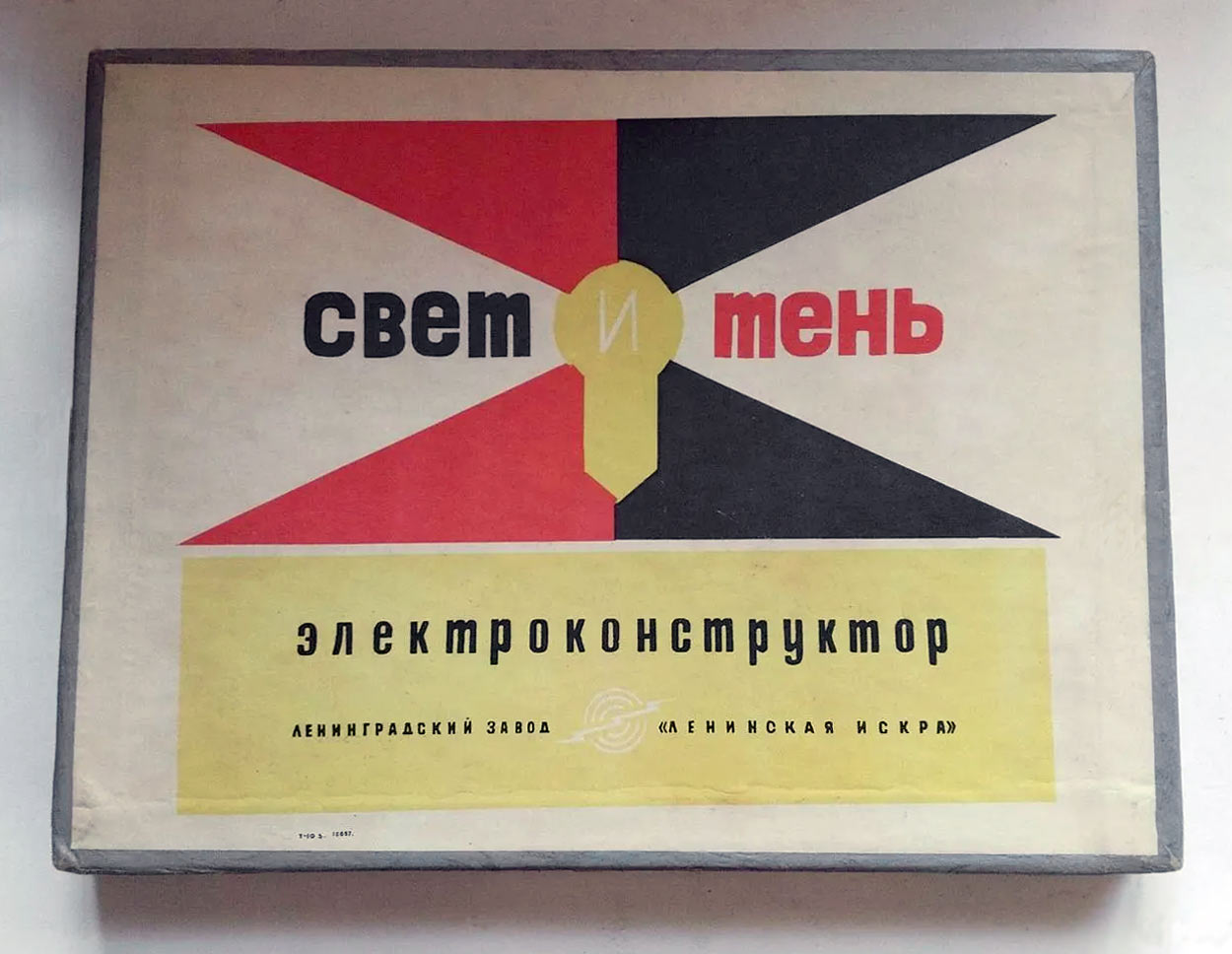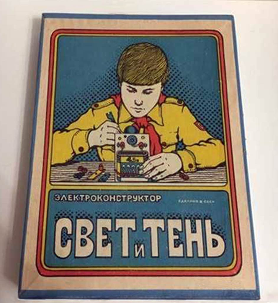 Электроконструктор "Свет и тень" выпускался предположительно с 1973 года Ленинградским заводом "Ленинская Искра". 78 опытов по оптике, механике и электричеству.