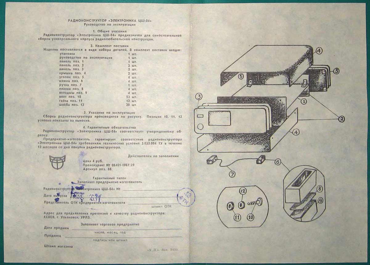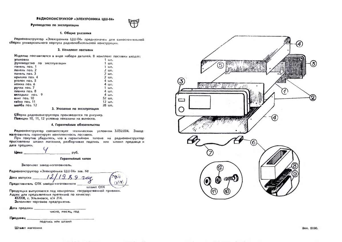 Радиоконструктор "Электроника ЦШ-04" (Универсальный корпус радиолюбительской конструкции) выпускался с 1989 года в городе Ульяновске. Радиоконструктор позволяет собрать корпус для радиоконструкций.